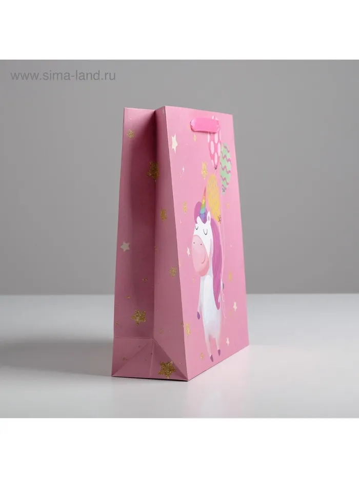 Пакет подарочный крафтовый, упаковка, «Единорожек», M 26 х 30 х 9 см — Характеристики
