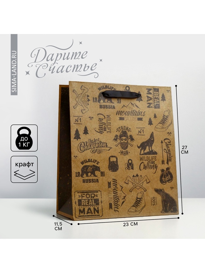 Пакет подарочный крафтовый, упаковка, «For real man», ML 23 х 27 х 11.5 см — Характеристики