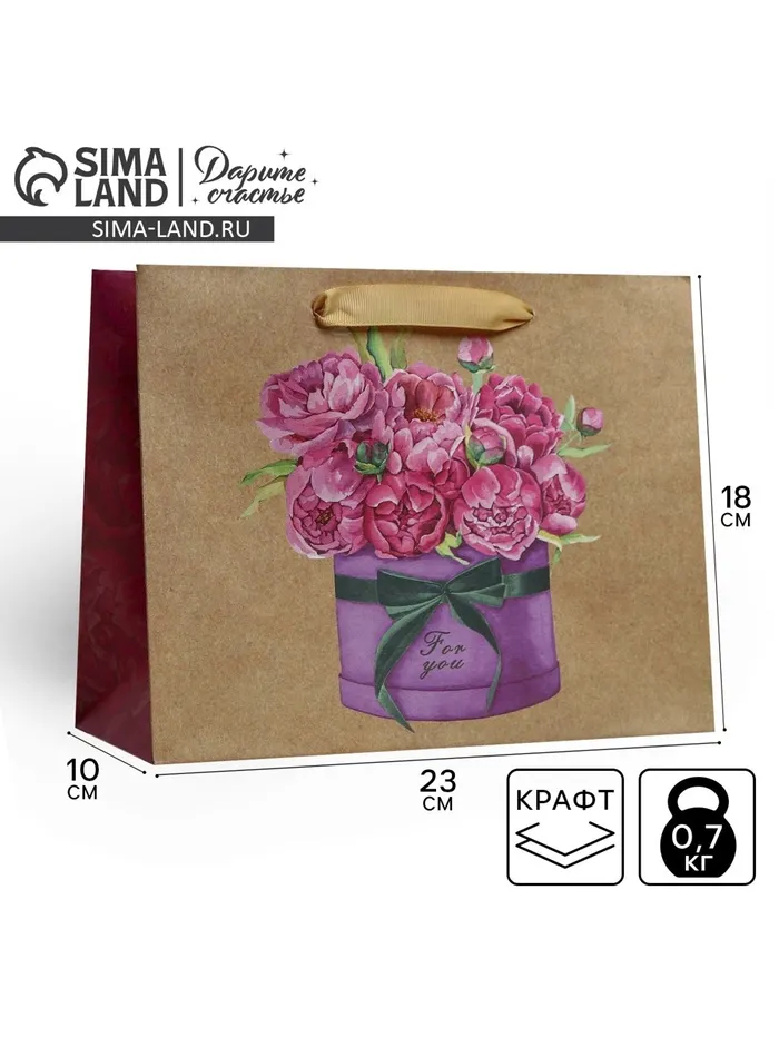 Пакет подарочный крафтовый, упаковка, For you, MS 23 х 18 х 10 см — Характеристики