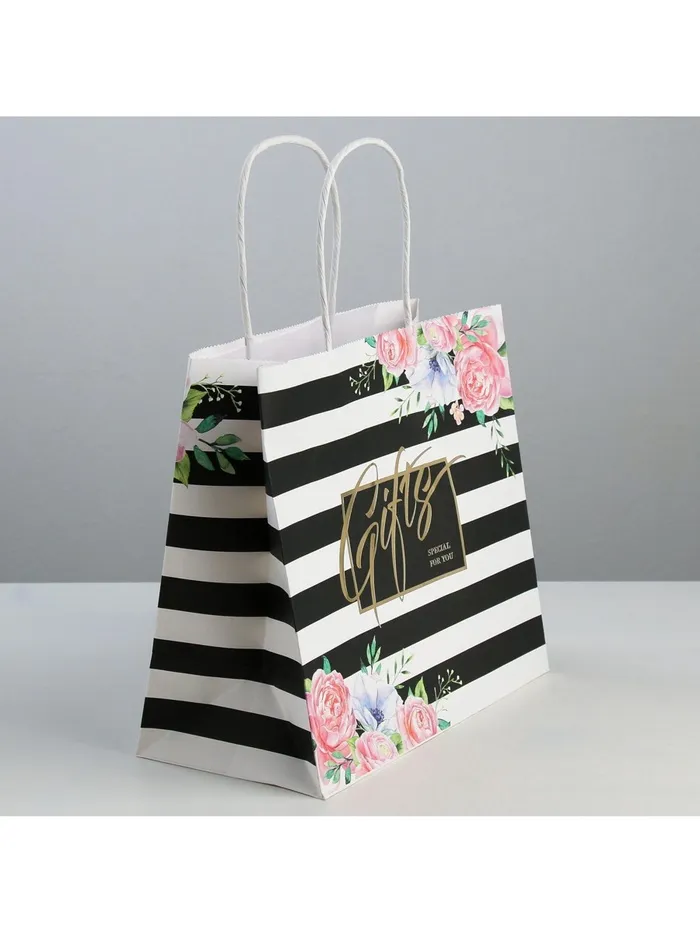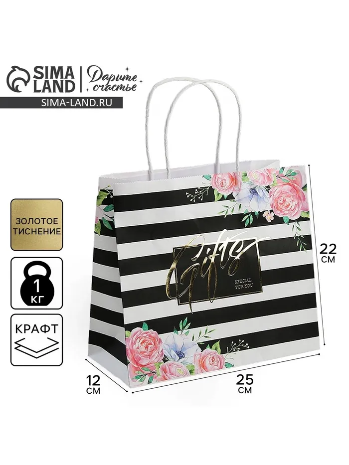 Пакет подарочный крафтовый, упаковка, «Gifts», 25 х 22 х 12 см — Характеристики