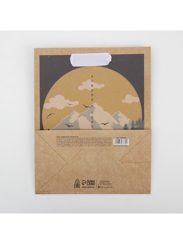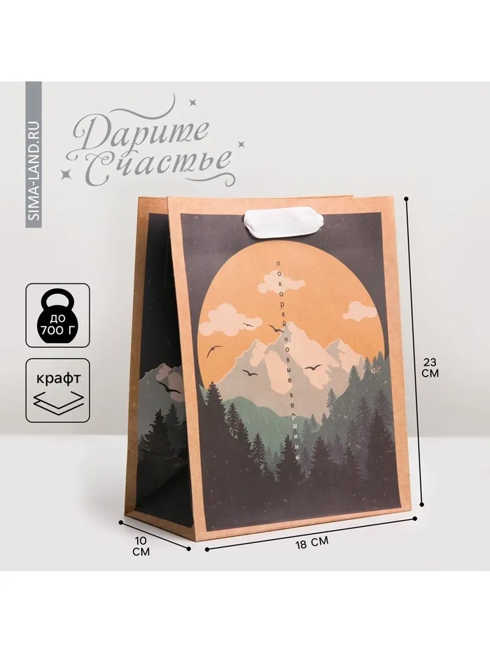 Пакет подарочный крафтовый, упаковка, «Горы», MS 18 х 23 х 8 см — Характеристики