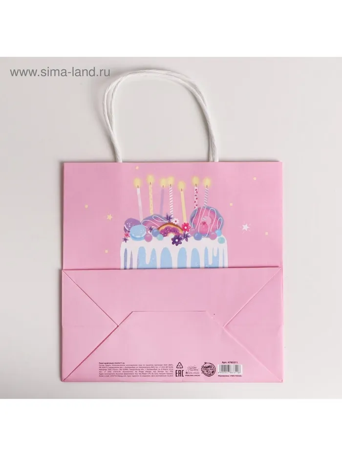 Пакет подарочный крафтовый, упаковка, «Happy Birthday», 22 х 22 х 11 см — Характеристики