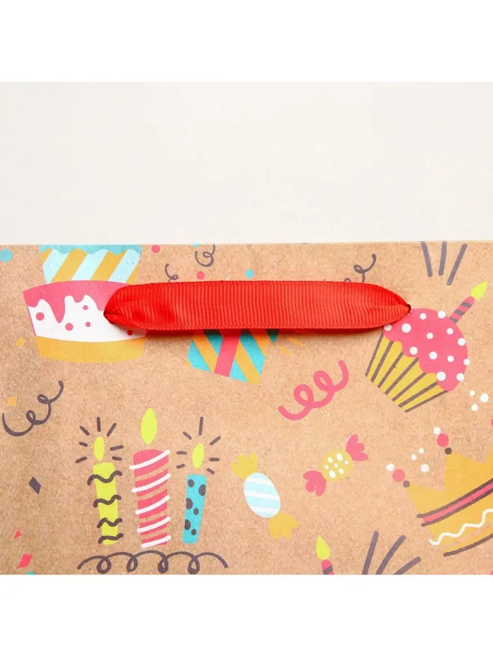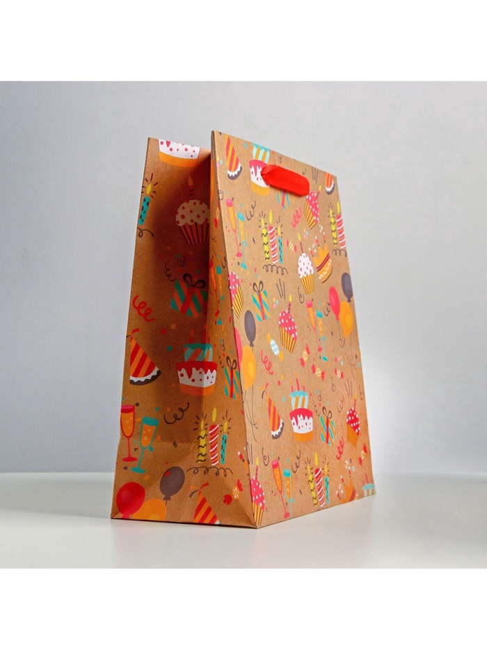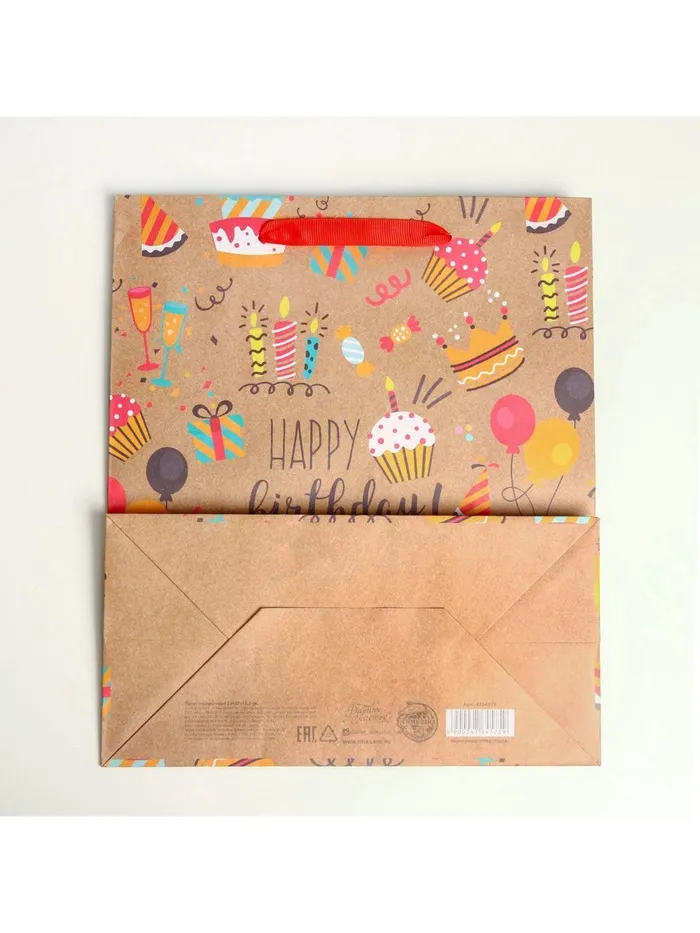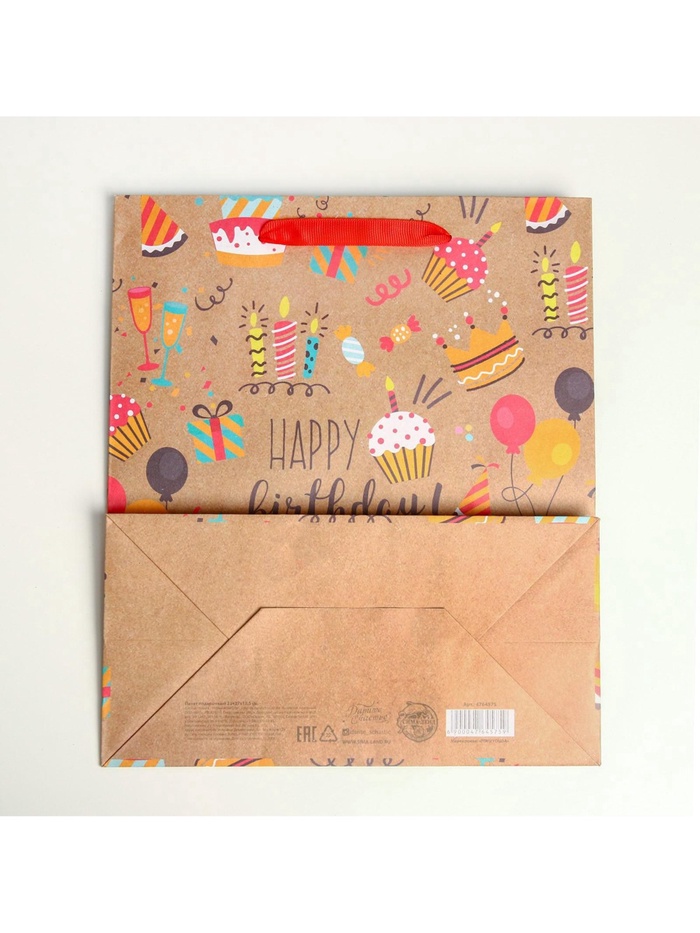 Пакет подарочный крафтовый, упаковка, Happy birthday, ML 23 х 27 х 11.5 см — Характеристики