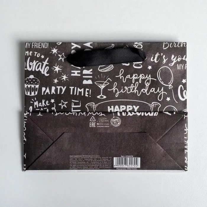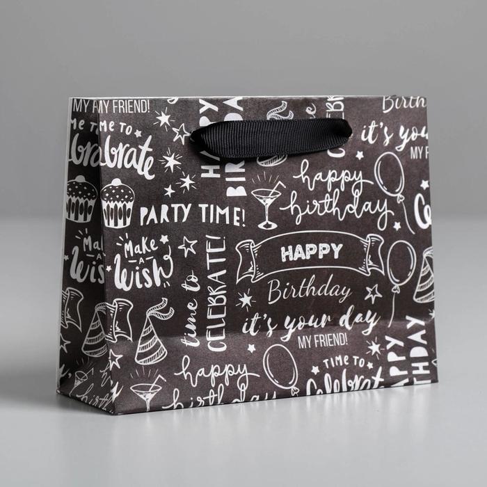 Пакет подарочный крафтовый, упаковка, «Happy birthday», S 15 х 12 х 5.5 см — Характеристики
