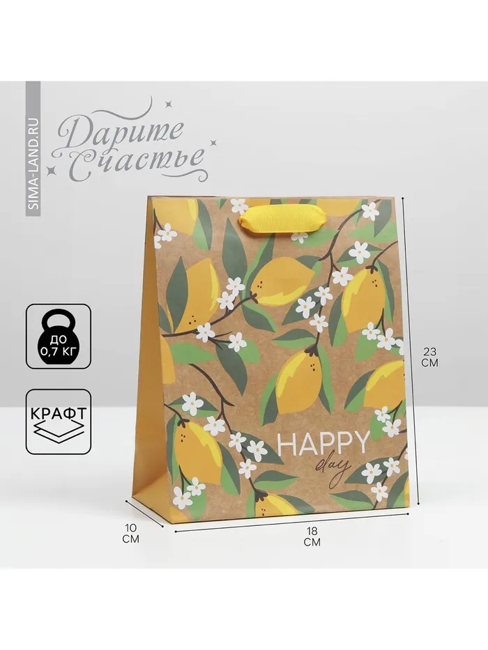 Пакет подарочный крафтовый, упаковка, «Happy day», MS 18 х 23 х 8 см — Характеристики