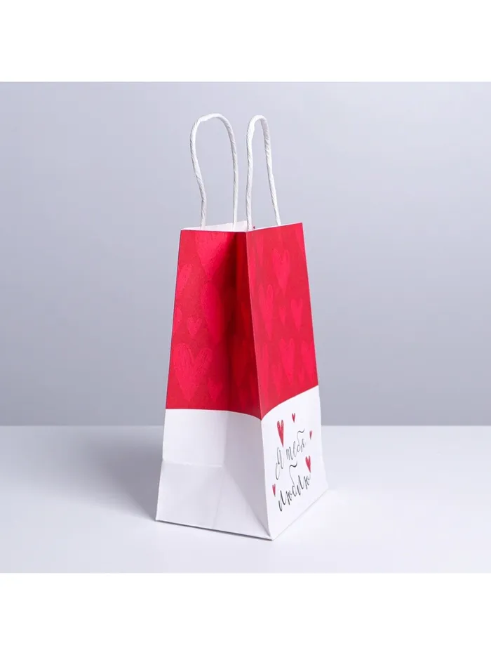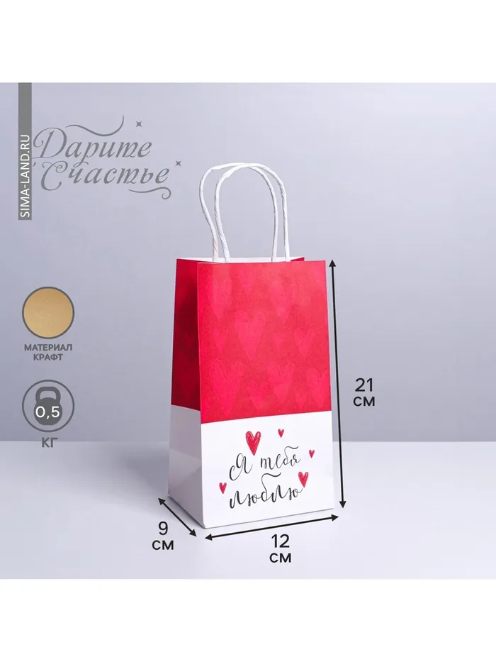 Пакет подарочный крафтовый, упаковка, «Я тебя люблю», 12 х 21 х 9 см — Характеристики