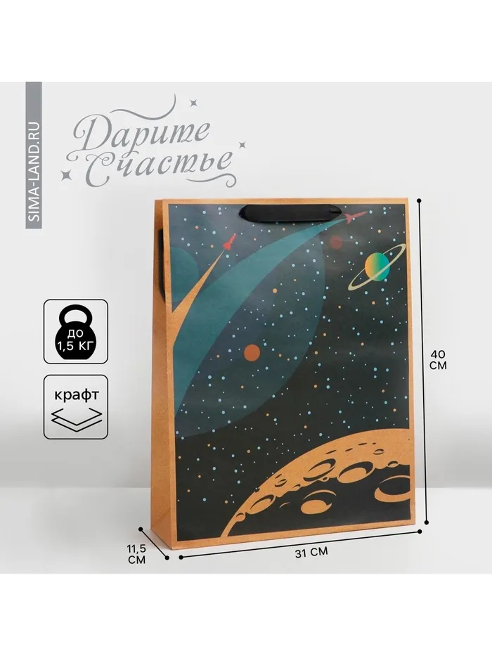 Пакет подарочный крафтовый, упаковка, «Космос», L 31 х 40 х 11.5 см — Характеристики