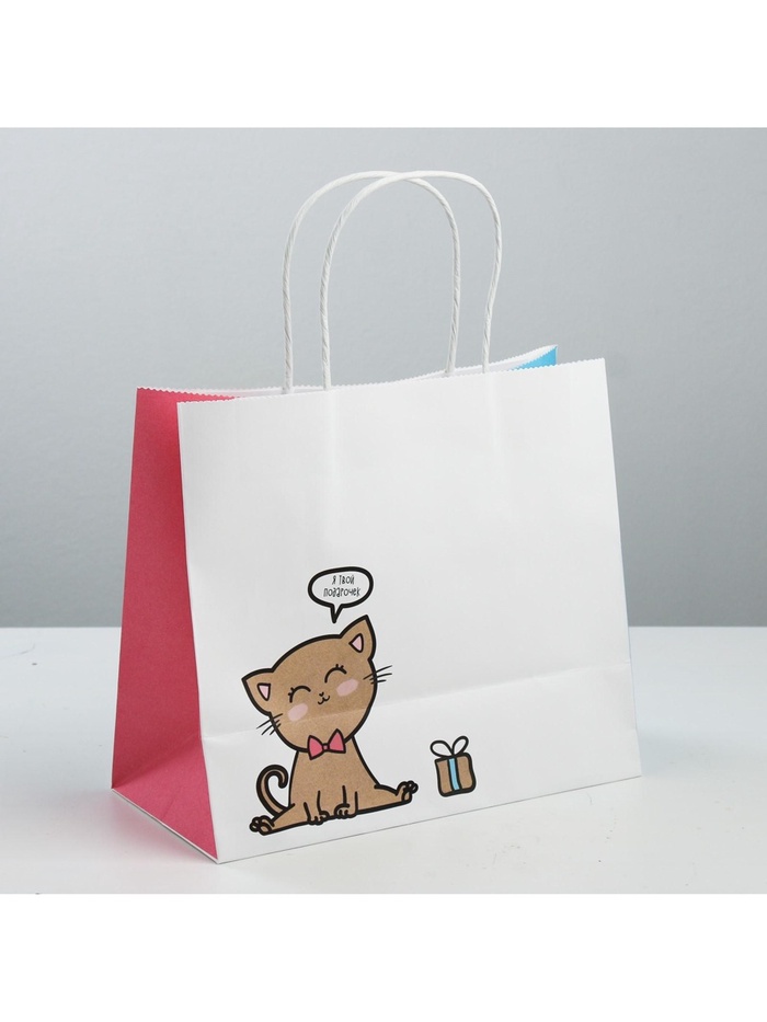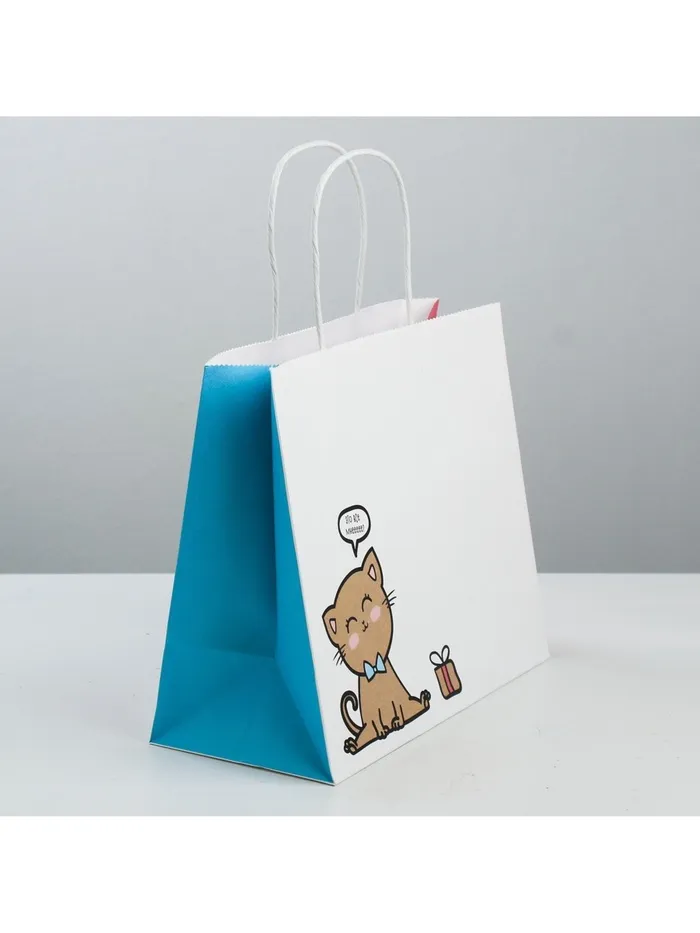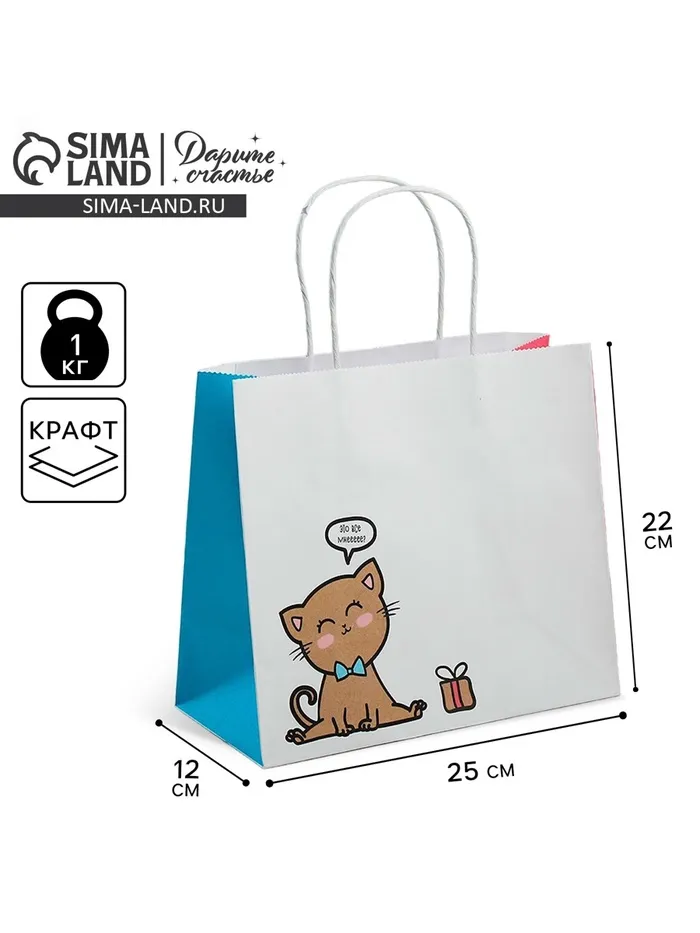 Пакет подарочный крафтовый, упаковка, «Котик», 25 х 22 х 12 см — Характеристики