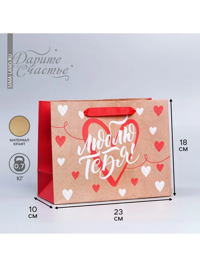 Пакет подарочный крафтовый, упаковка, «Люблю тебя», MS 18 х 23 х 8 см — Характеристики