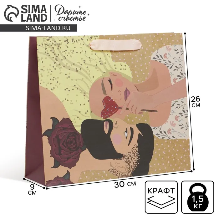 Пакет подарочный крафтовый, упаковка, «Любовь», M 30 х 26 х 9 см — Характеристики