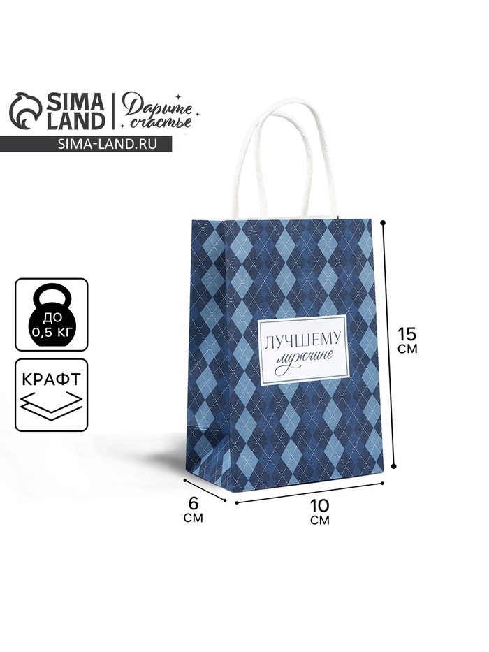 Пакет подарочный крафтовый, упаковка, «Лучшему», 15 х 10 х 6 см — Характеристики