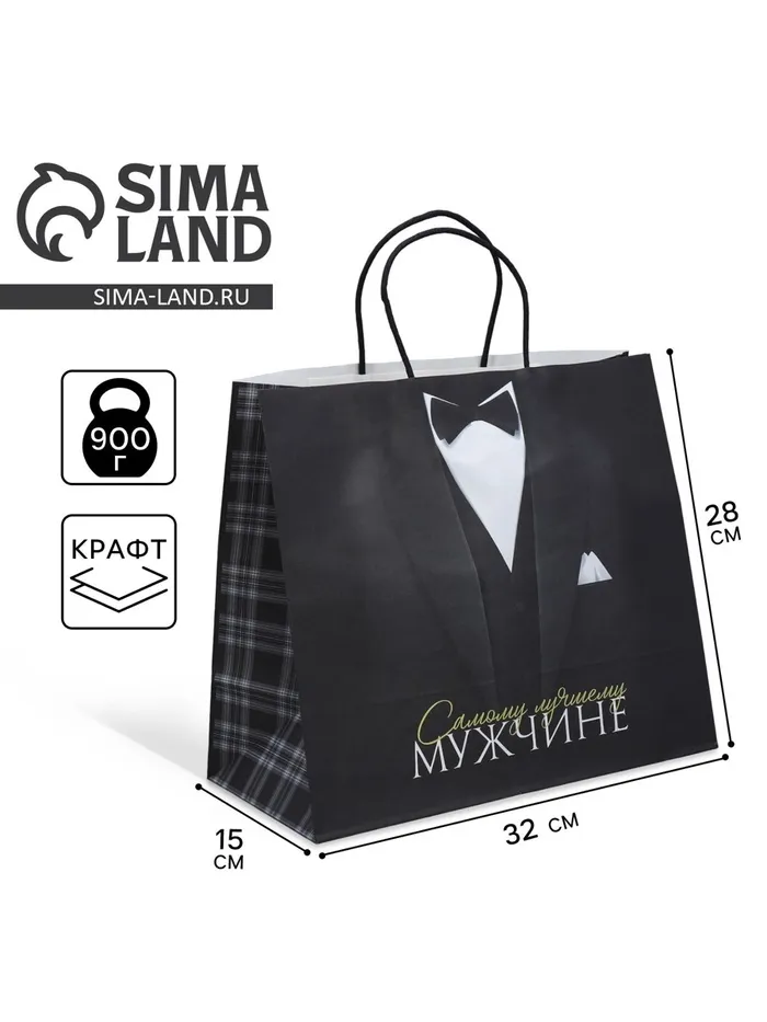 Пакет подарочный крафтовый, упаковка, «Лучшему мужчине», 32 х 28 х 15 см — Характеристики