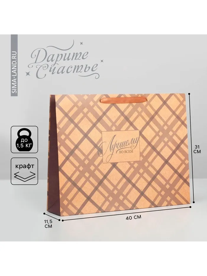 Пакет подарочный крафтовый, упаковка, «Лучшему во всём», L 40 х 31 х9 см — Характеристики