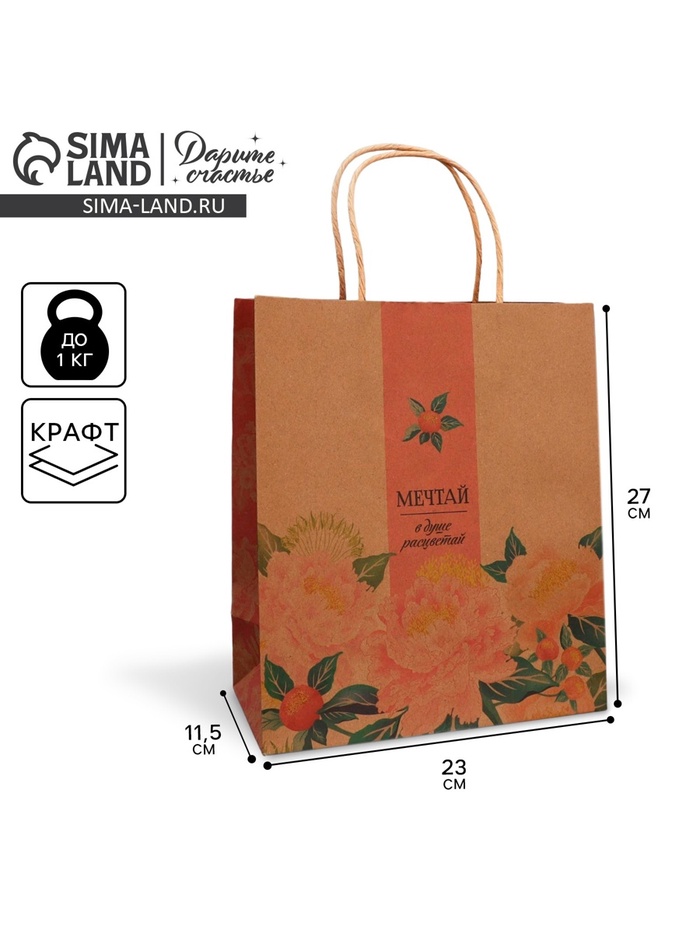 Пакет подарочный крафтовый, упаковка, «Мечтай», ML 23 х 27 х 11.5 см — Характеристики