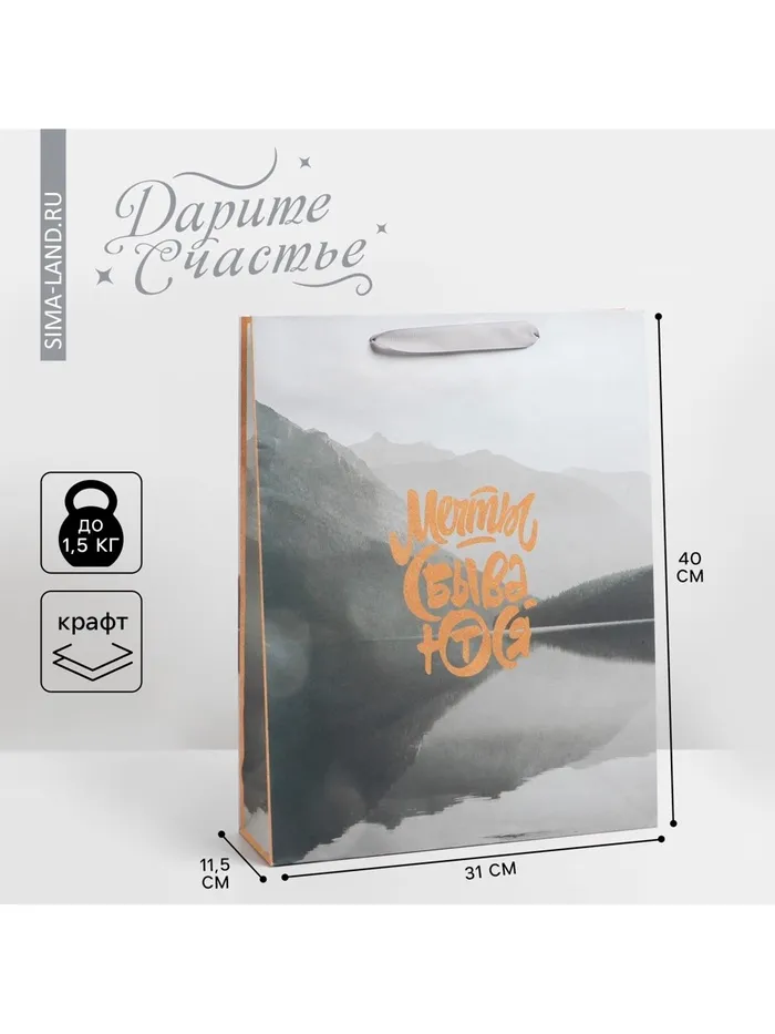 Пакет подарочный крафтовый, упаковка, «Мечты сбываются», L 31 х 40 х 11.5 см — Характеристики