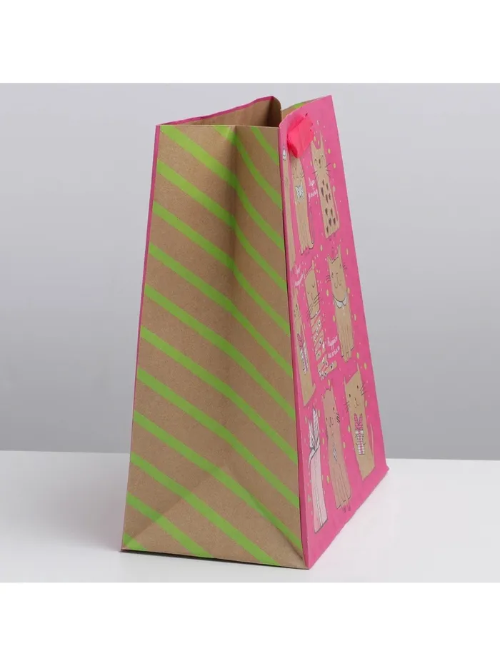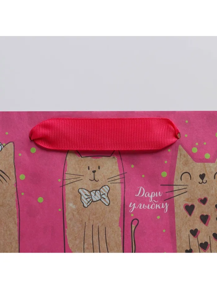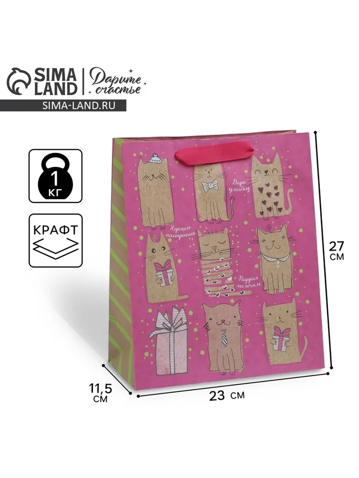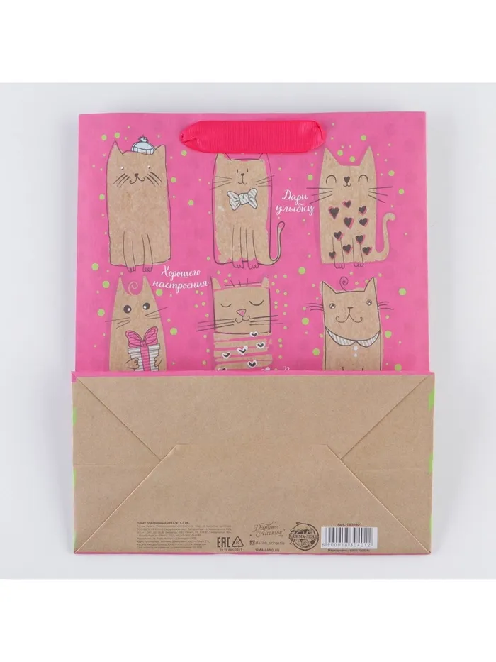 Пакет подарочный крафтовый, упаковка, «Милые котики», ML 23 х 27 х 8 см — Характеристики