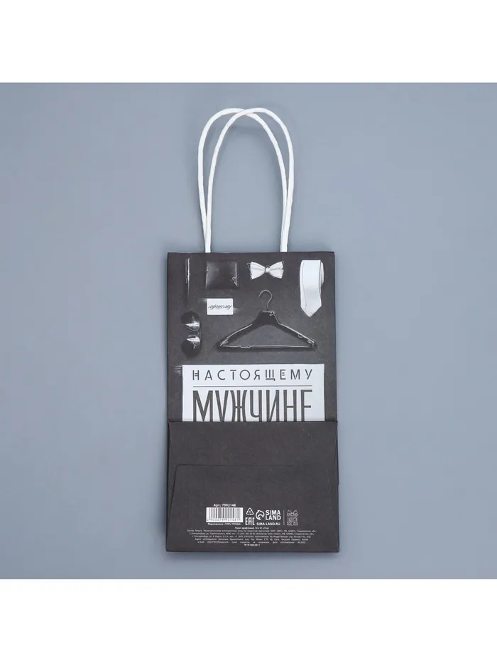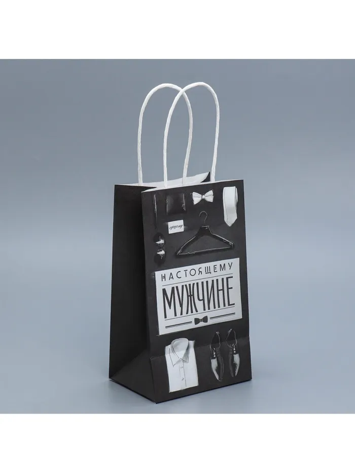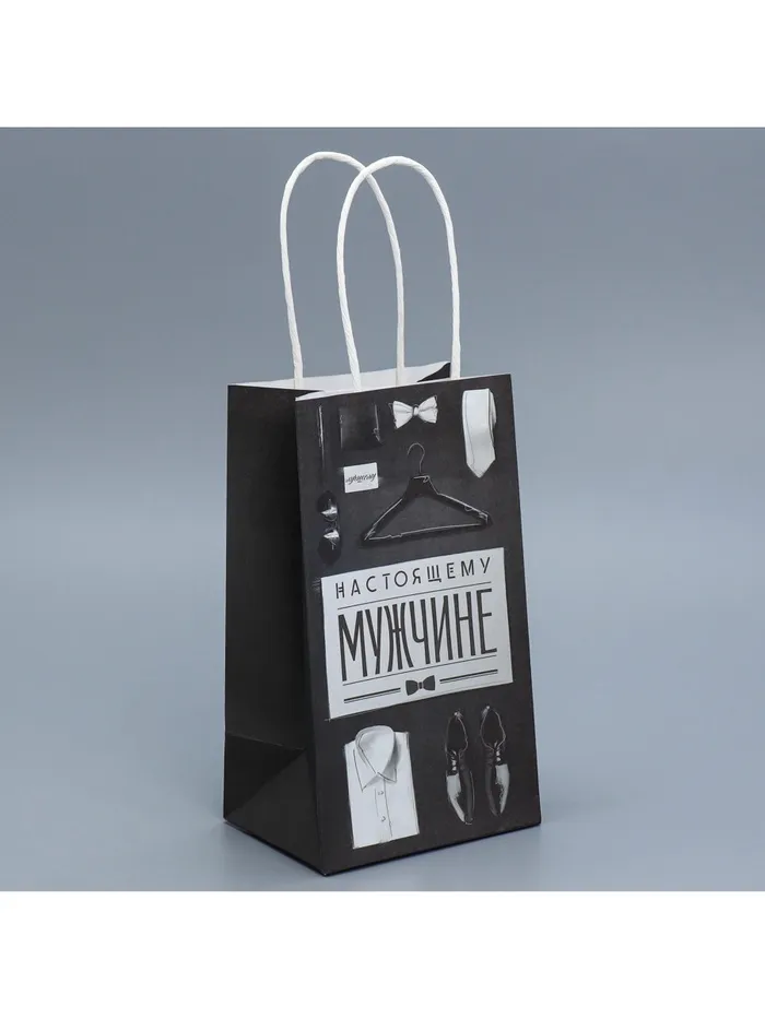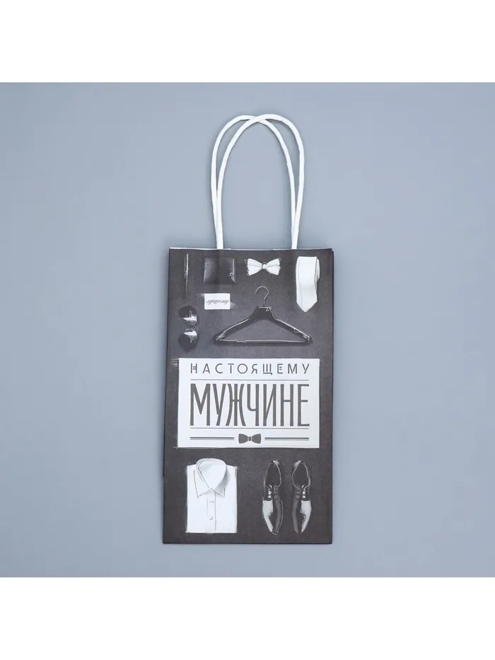 Пакет подарочный крафтовый, упаковка, «Мужские атрибуты», 12 х 21 х 9 см — Характеристики