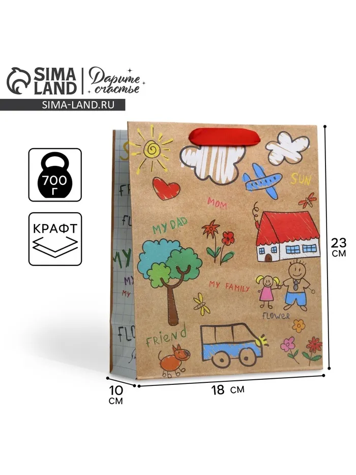 Пакет подарочный крафтовый, упаковка, «My family», MS 18 х 23 х 10 см — Характеристики
