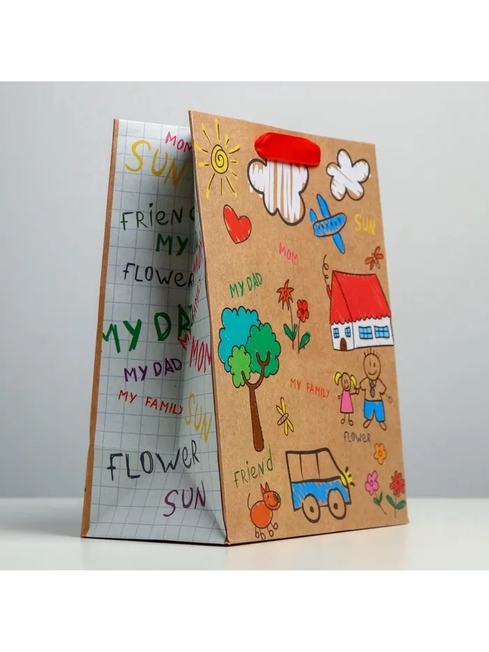 Пакет подарочный крафтовый, упаковка, «My family», MS 18 х 23 х 10 см