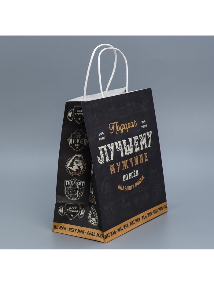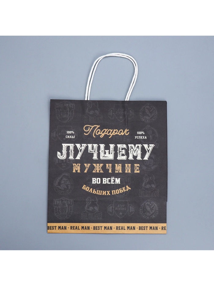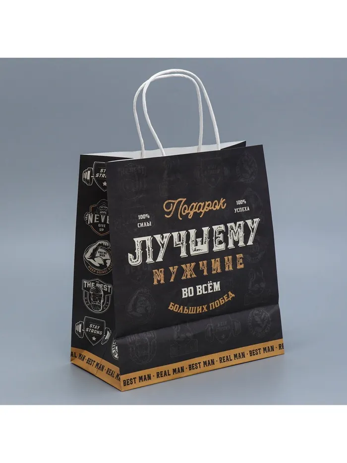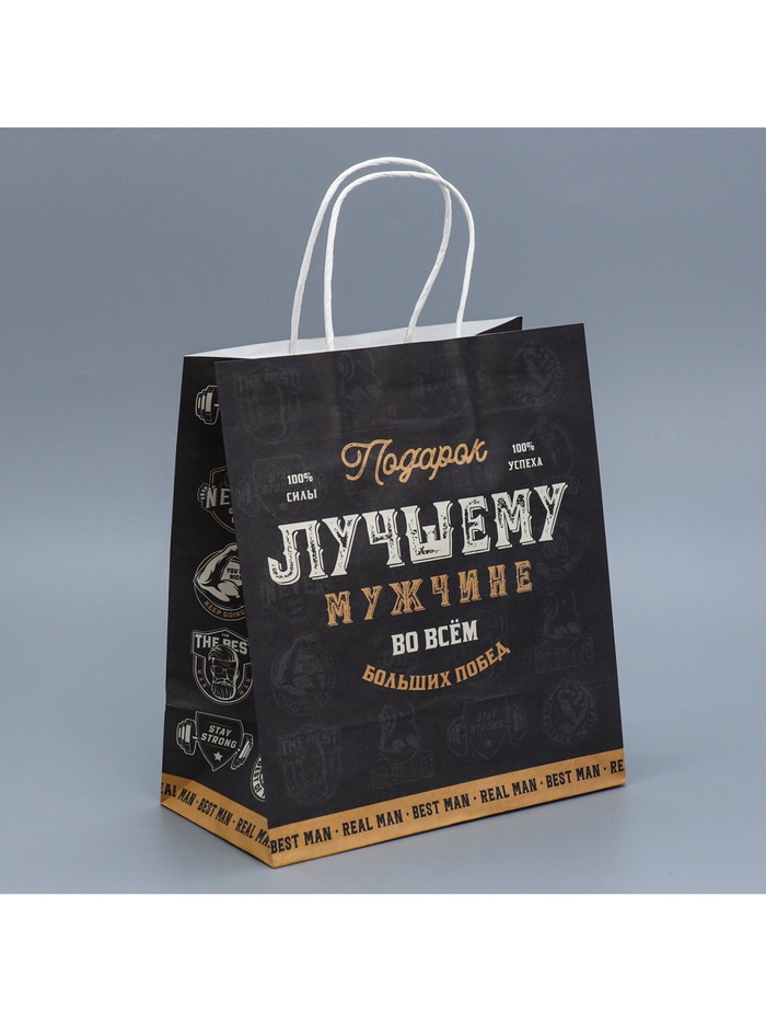 Пакет подарочный крафтовый, упаковка, «Настоящему мужчине», 22 х 25 х 12 см — Характеристики