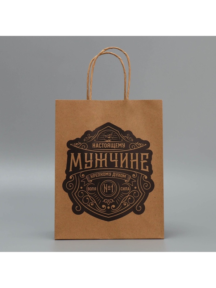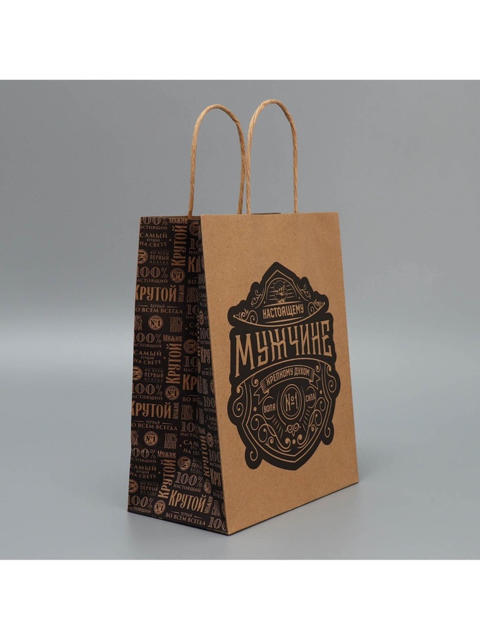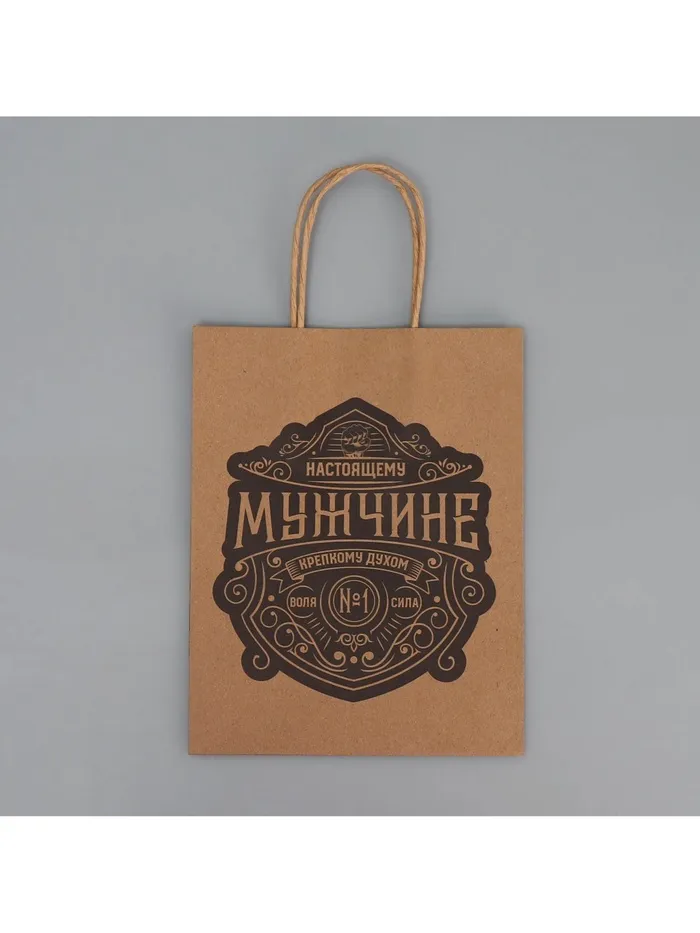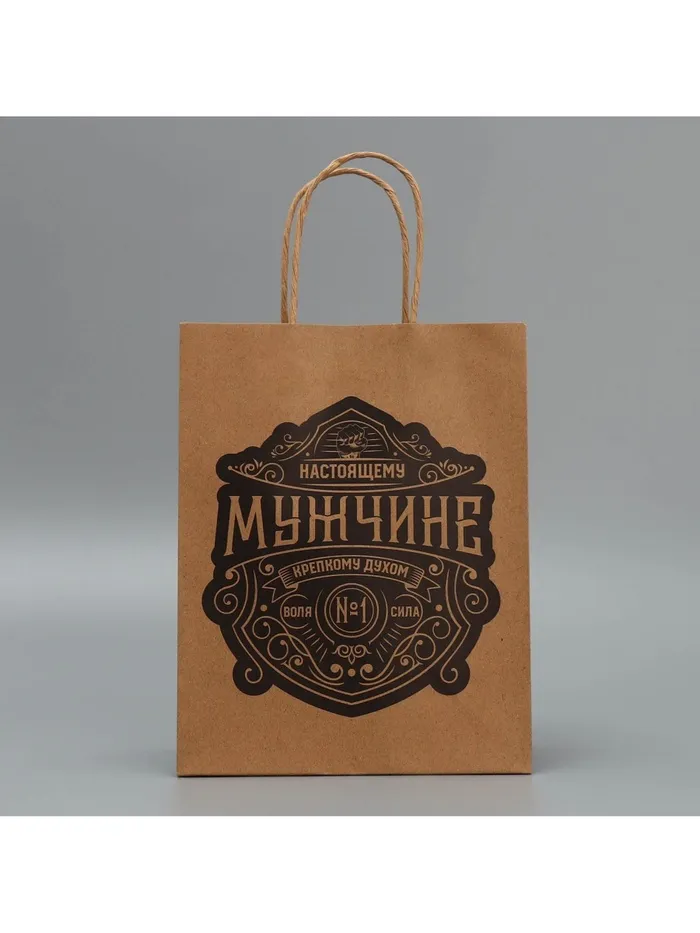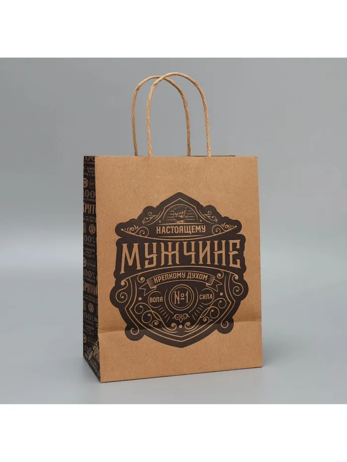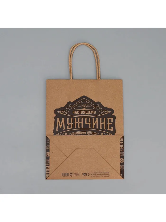 Пакет подарочный крафтовый, упаковка, «Настоящему мужчине», MS 18 х 23 х 10 см — Характеристики