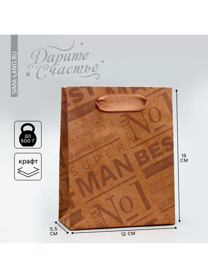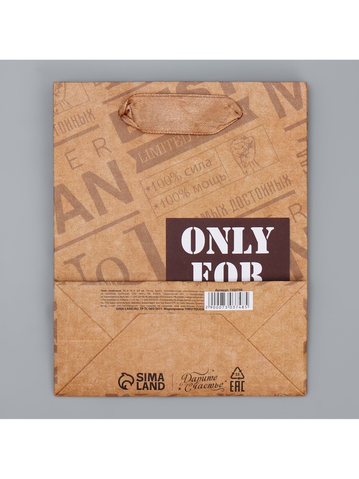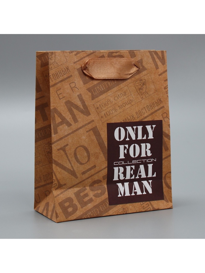 Пакет подарочный крафтовый, упаковка, «Only for real man», S 12 х 15 х 5.5 см — Характеристики