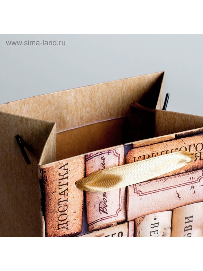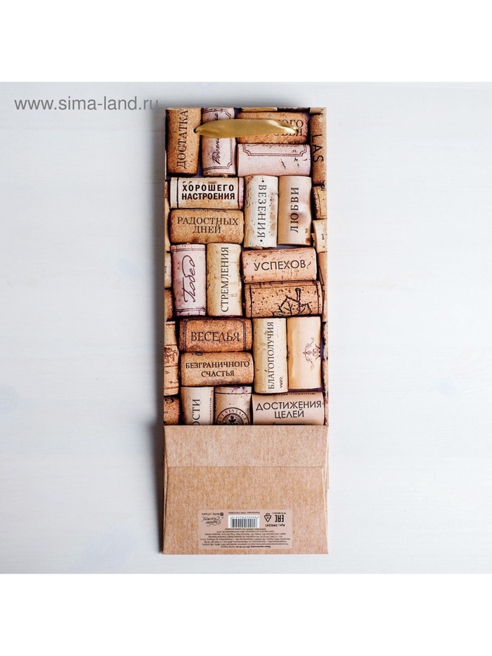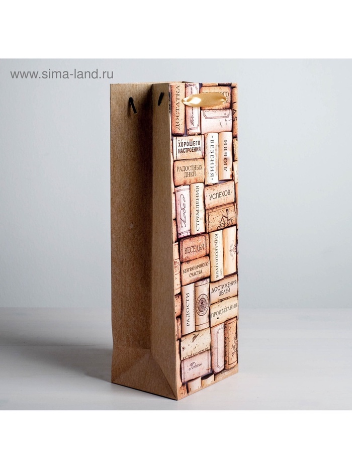 Пакет подарочный крафтовый упаковка под бутылку, «С пожеланиями!», 12×36×10 см — Характеристики