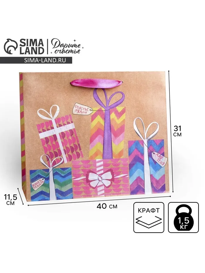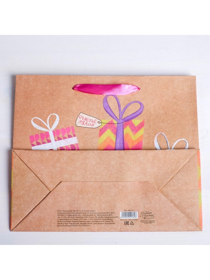 Пакет подарочный крафтовый, упаковка, «Подарки!», L 31 х 40 х 9 см — Характеристики