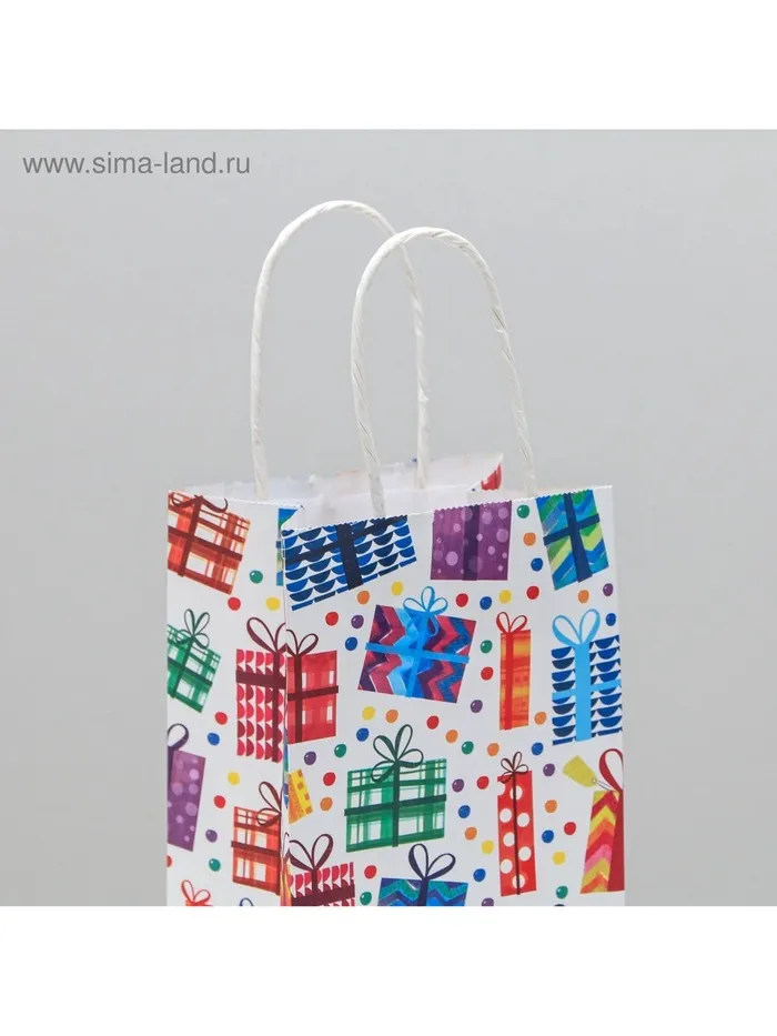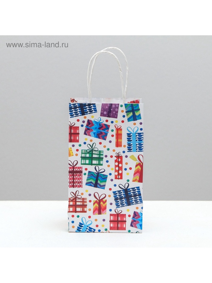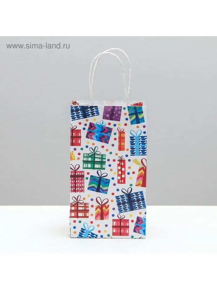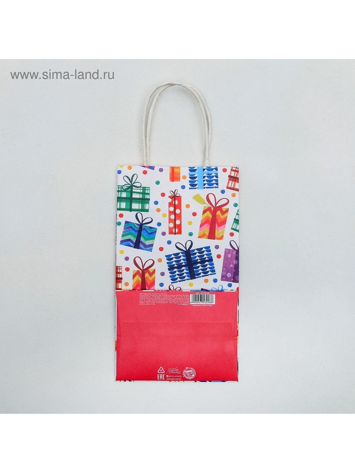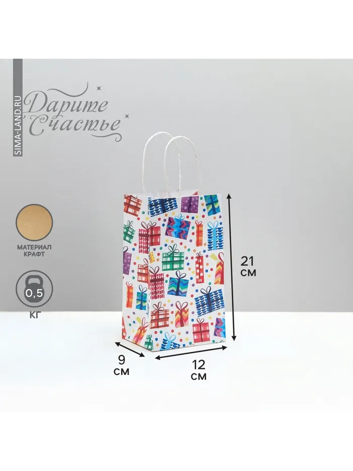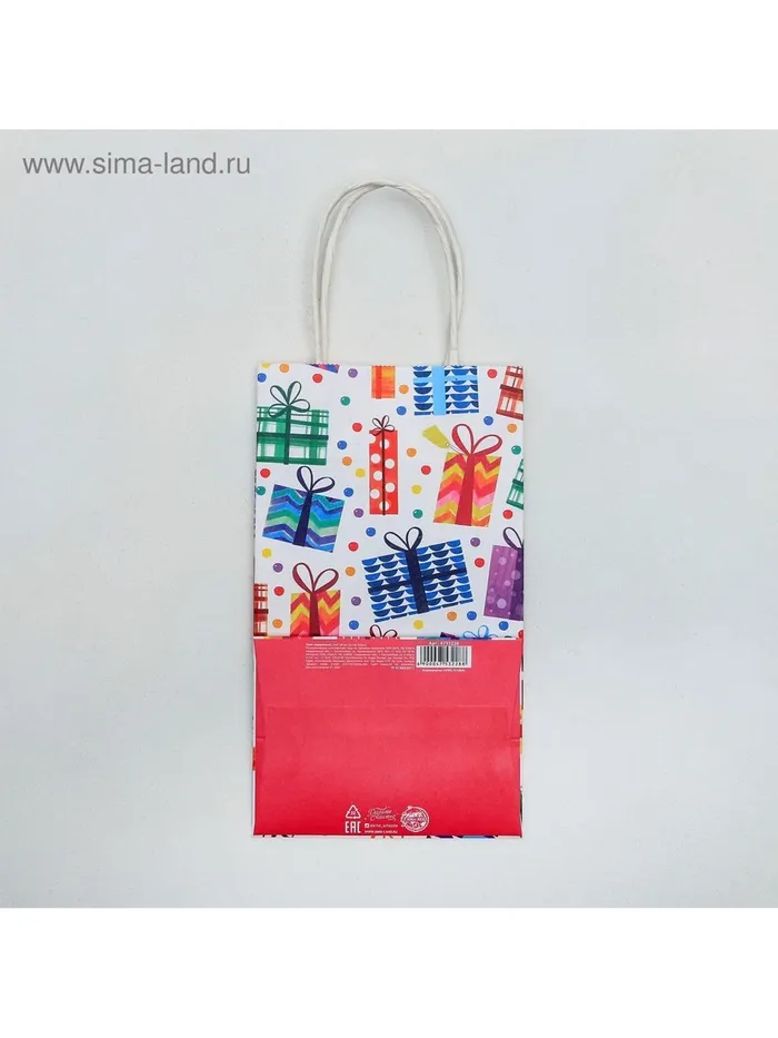 Пакет подарочный крафтовый, упаковка, «Подарочки», 12 х 21 х 9 см — Характеристики