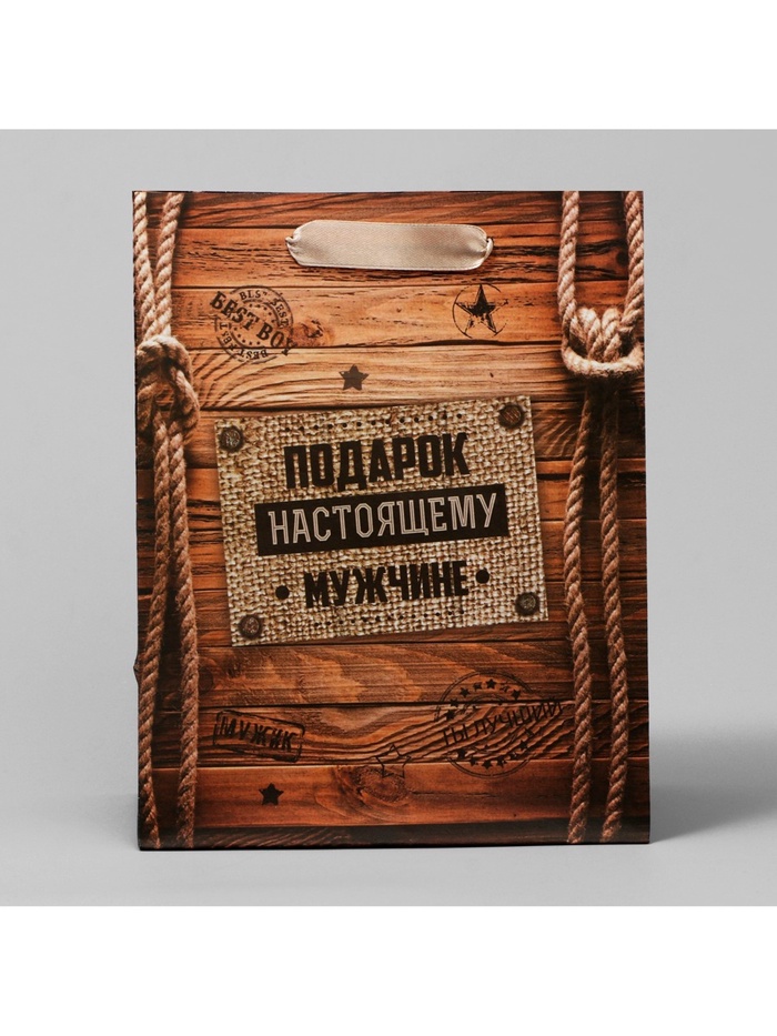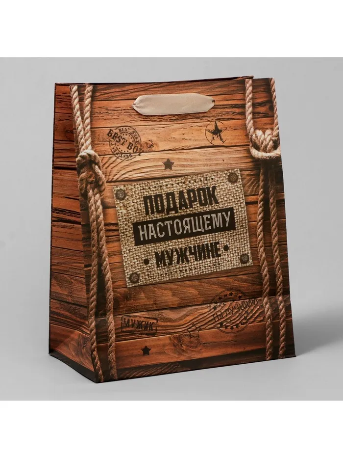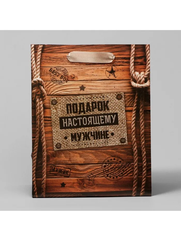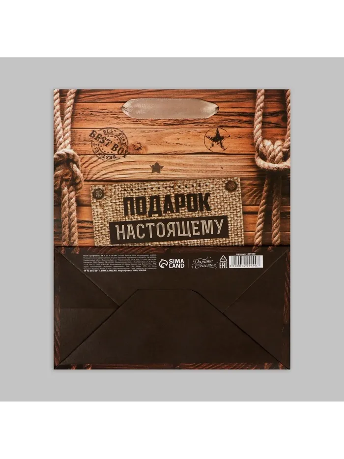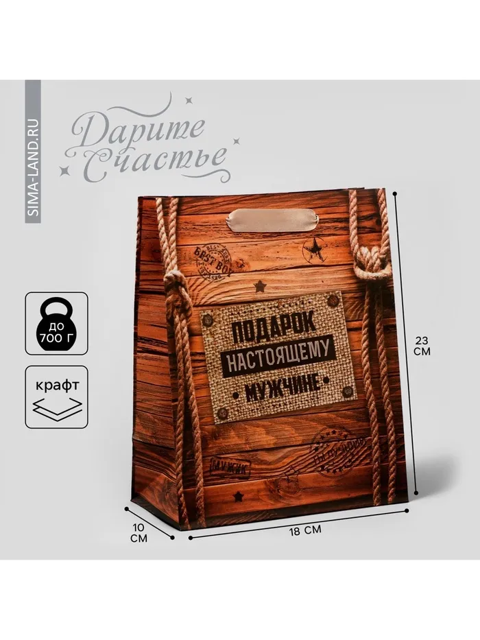 Пакет подарочный крафтовый, упаковка, «Подарок настоящему мужчине», 18 х 23 х 8 см — Характеристики