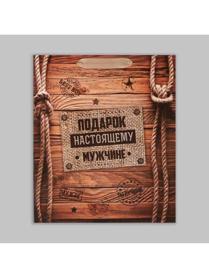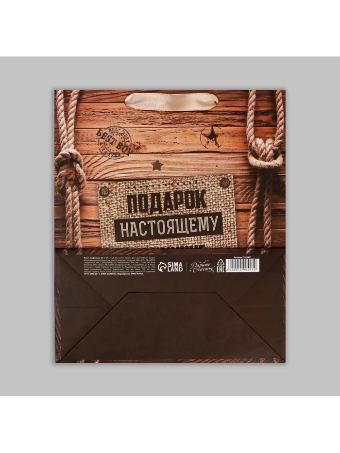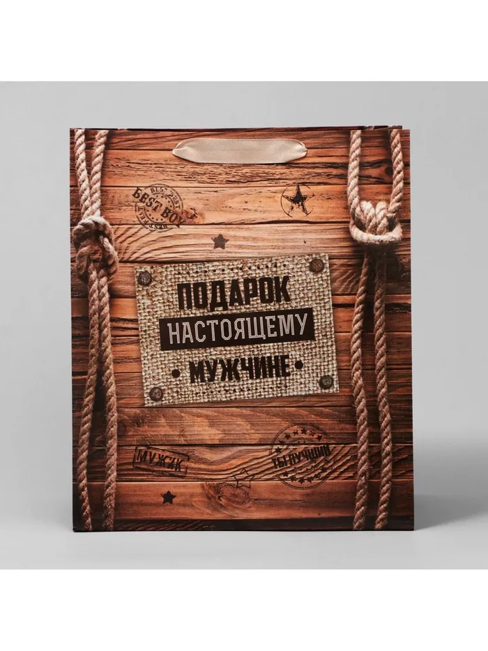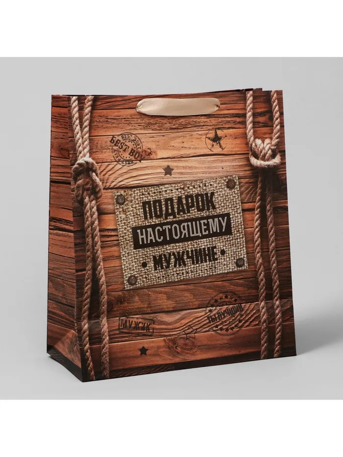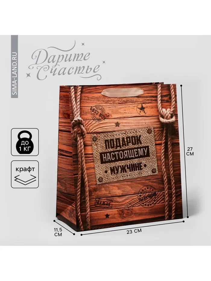 Пакет подарочный крафтовый, упаковка, «Подарок настоящему мужчине», 23 х 27 х 8 см — Характеристики