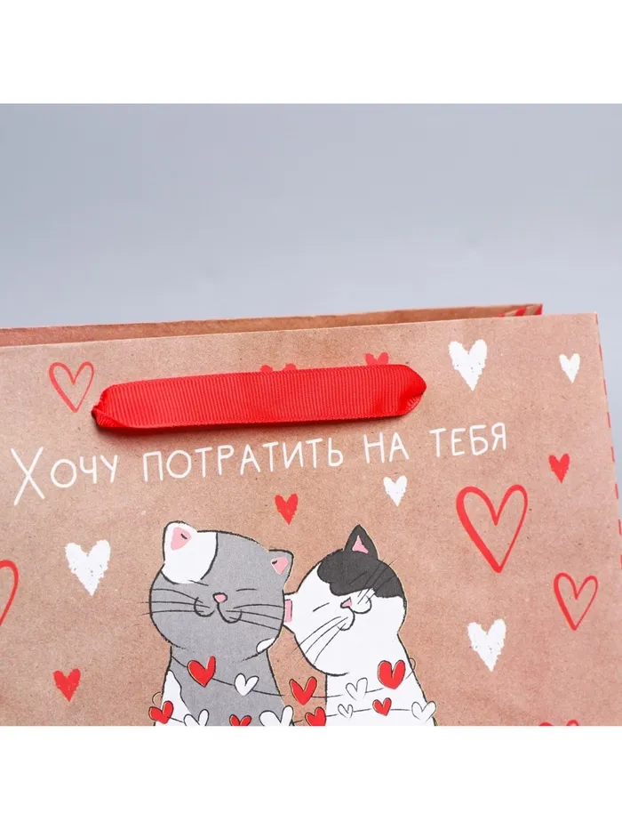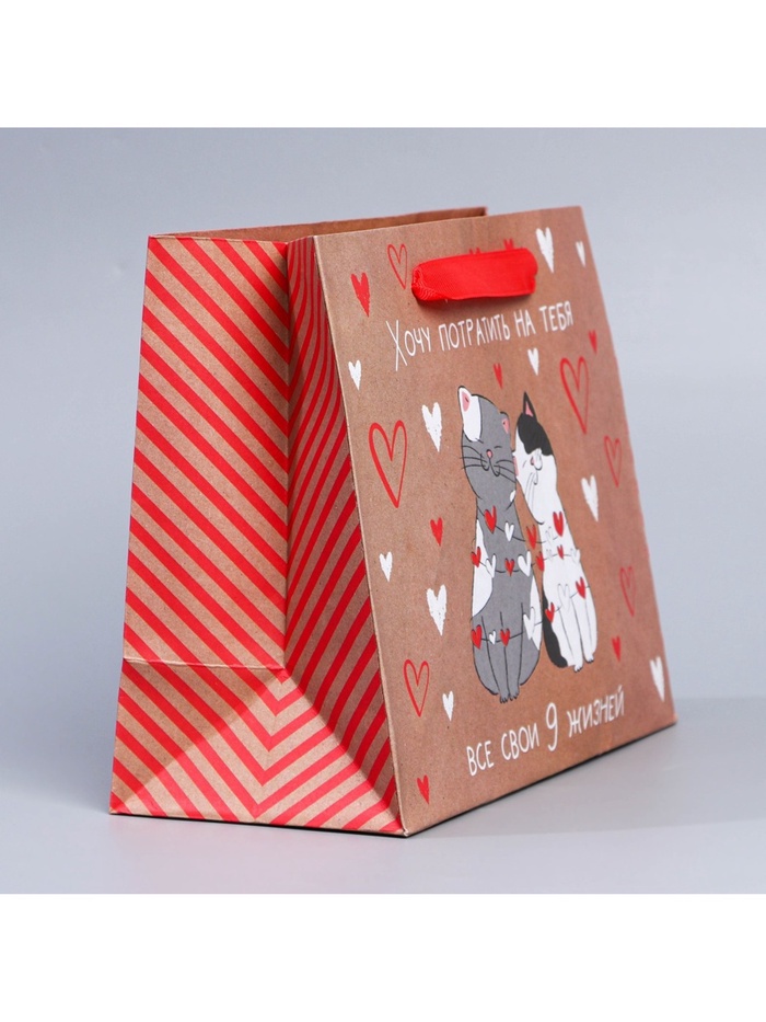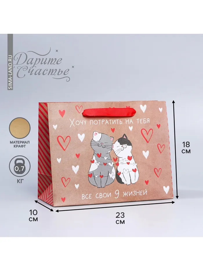 Пакет подарочный крафтовый, упаковка, «Потрачу девять жизней», MS 18 х 23 х 8 см — Характеристики