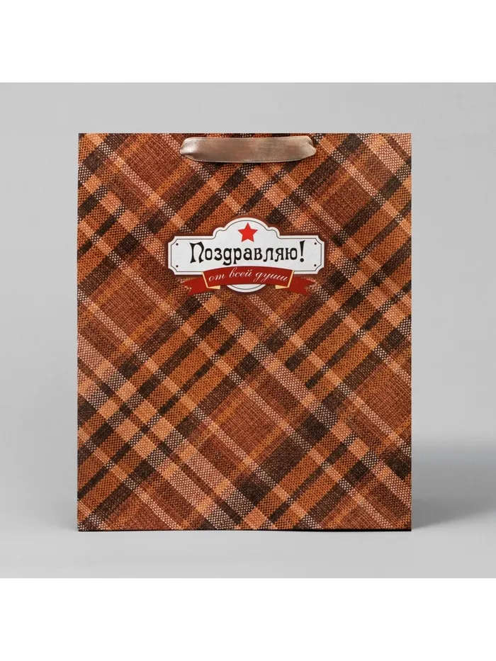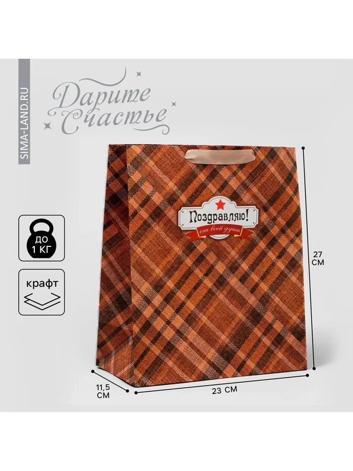 Пакет подарочный крафтовый, упаковка, «Поздравляю от всей души!», ML 23 х 27 х 11.5 см — Характеристики