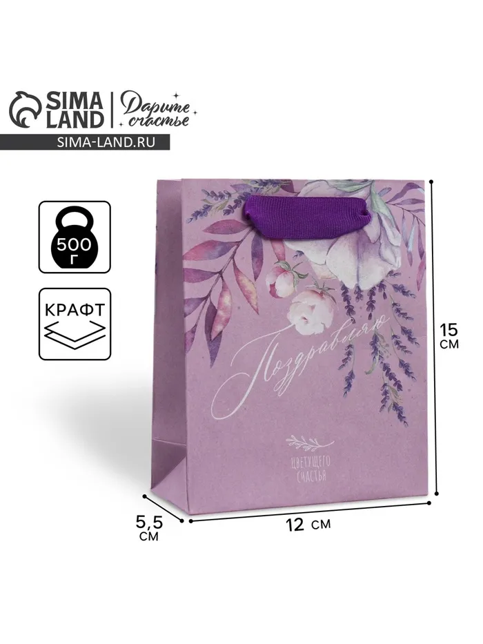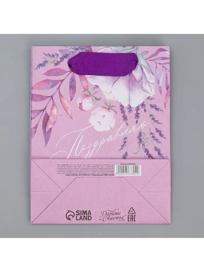 Пакет подарочный крафтовый, упаковка, «Поздравляю», S 12 х 15 х 5.5 см — Характеристики