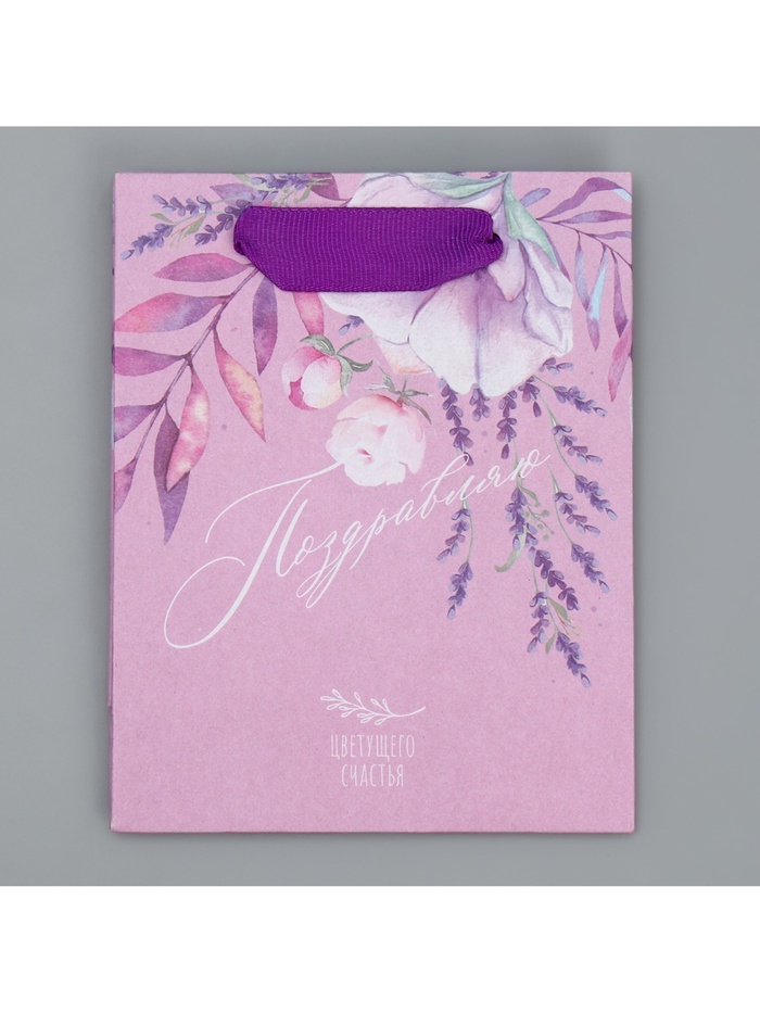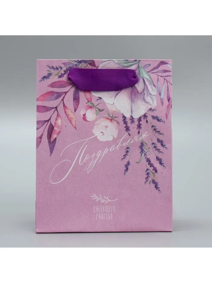 Пакет подарочный крафтовый, упаковка, «Поздравляю», S 12 х 15 х 5.5 см