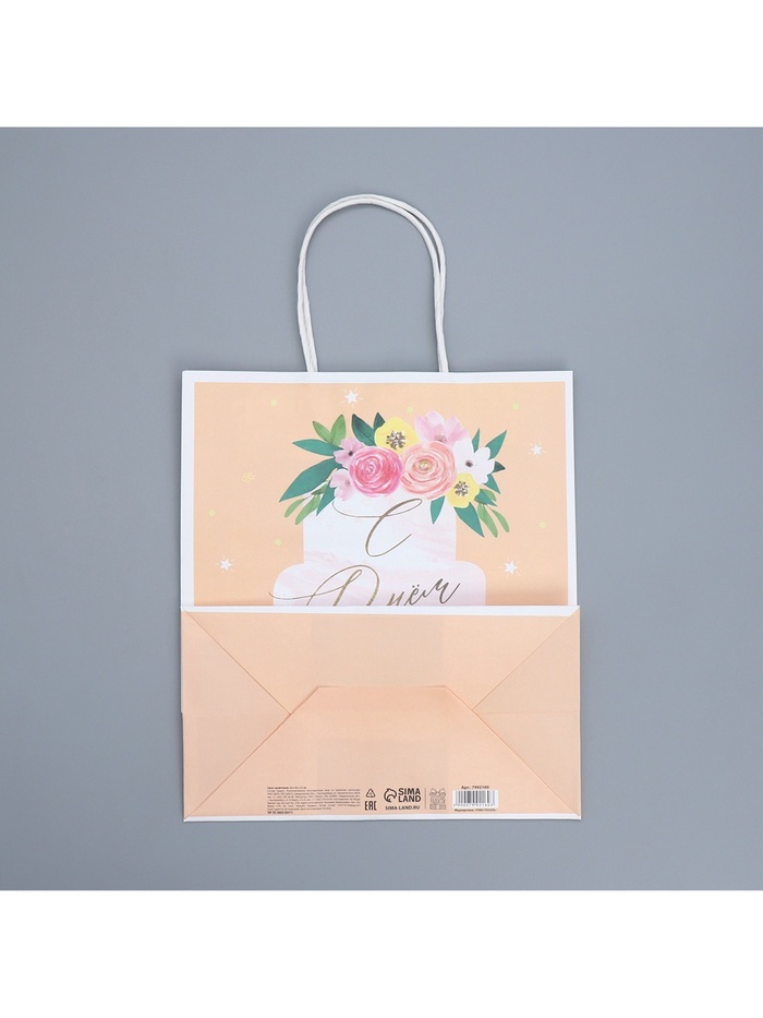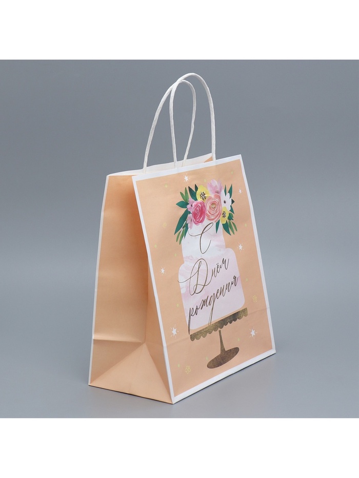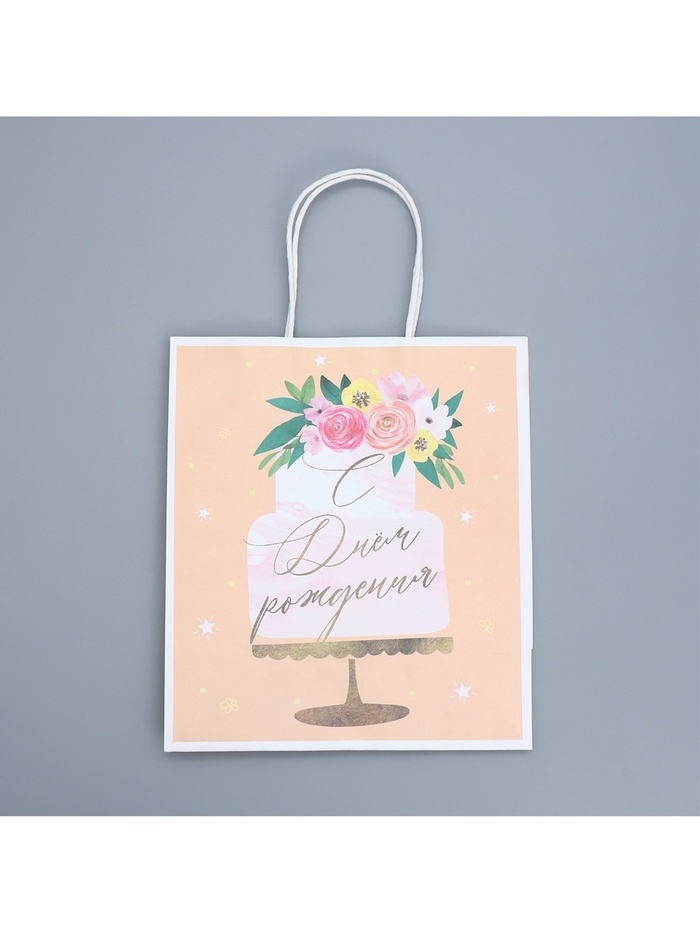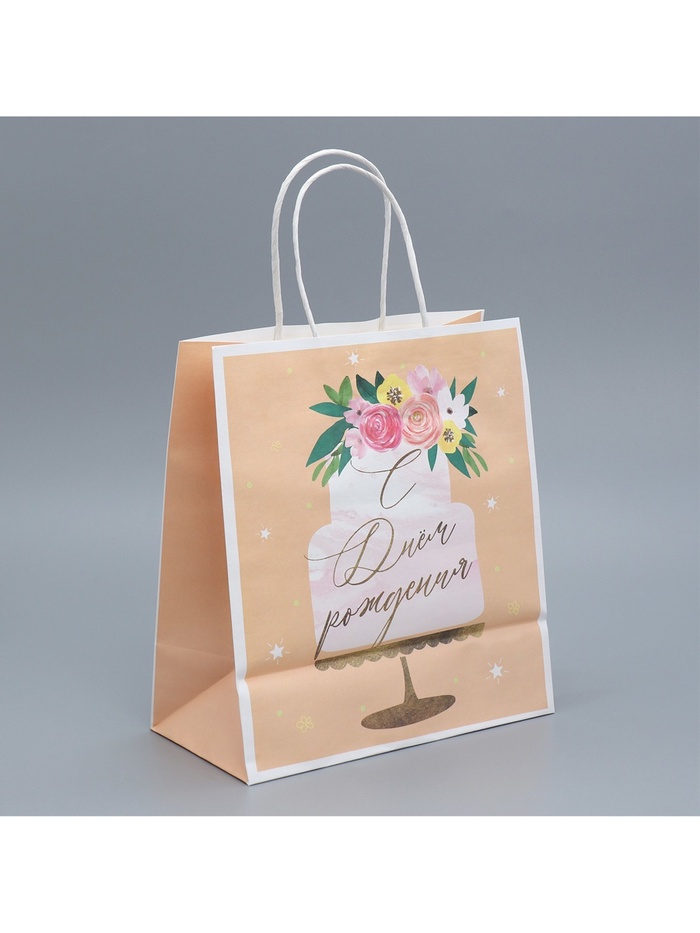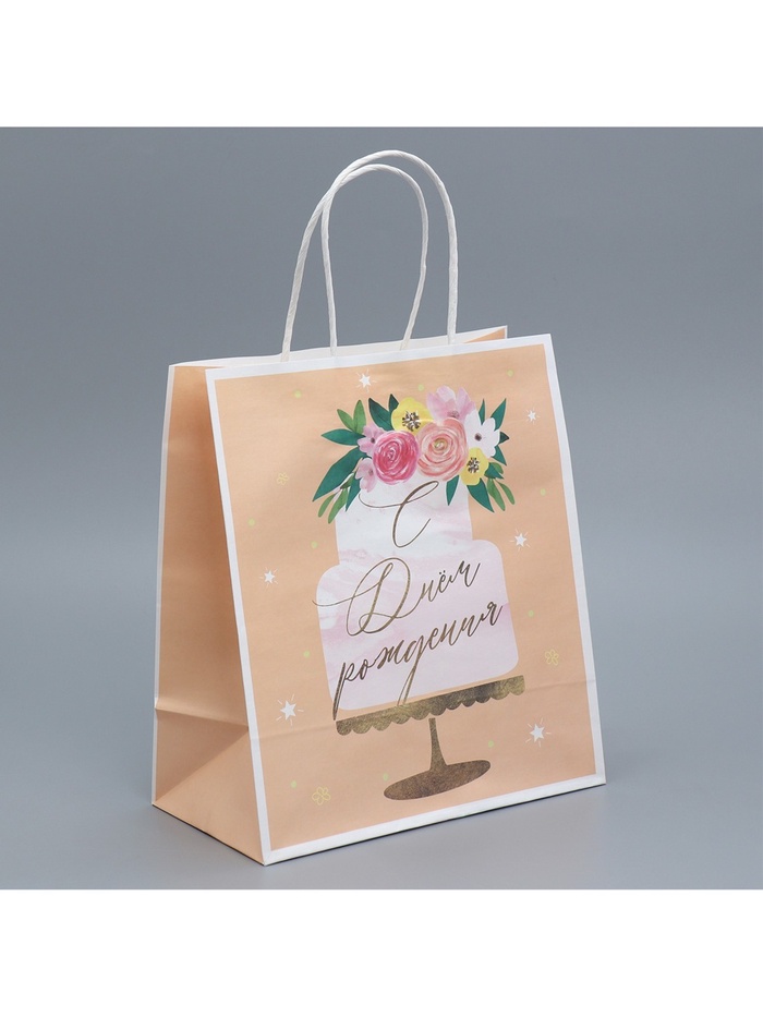 Пакет подарочный крафтовый, упаковка, «Праздничный торт», 22 х 25 х 12 см — Характеристики