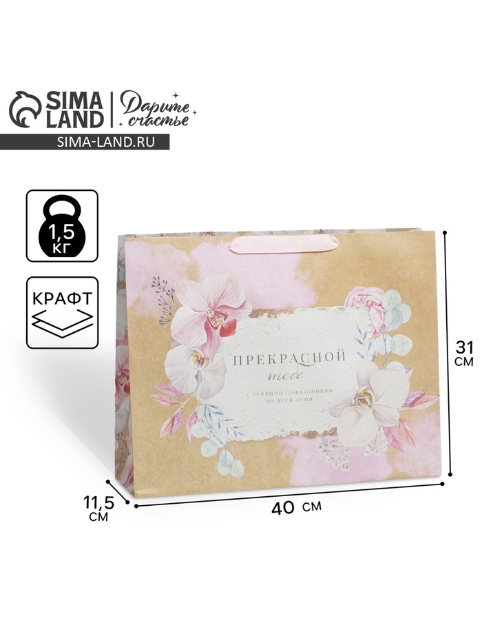 Пакет подарочный крафтовый, упаковка, «Прекрасной», L 40 х 31 х 11.5 см — Характеристики