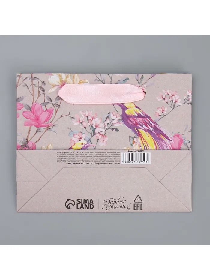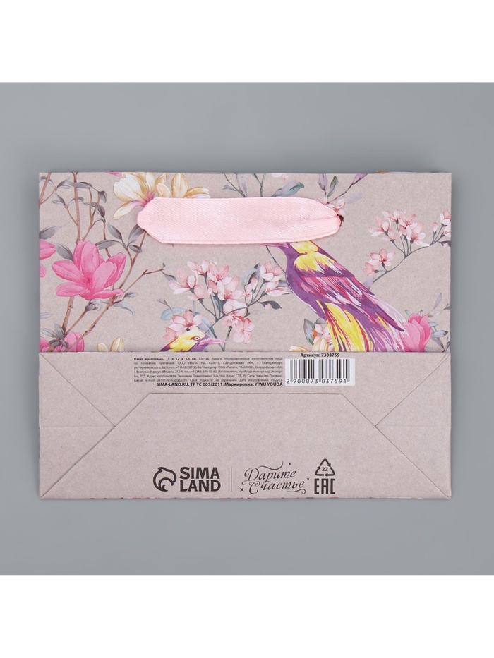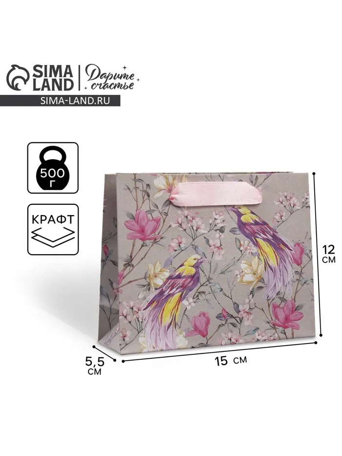 Пакет подарочный крафтовый, упаковка, «Птицы», S 15 х 12 х 5.5 см — Характеристики