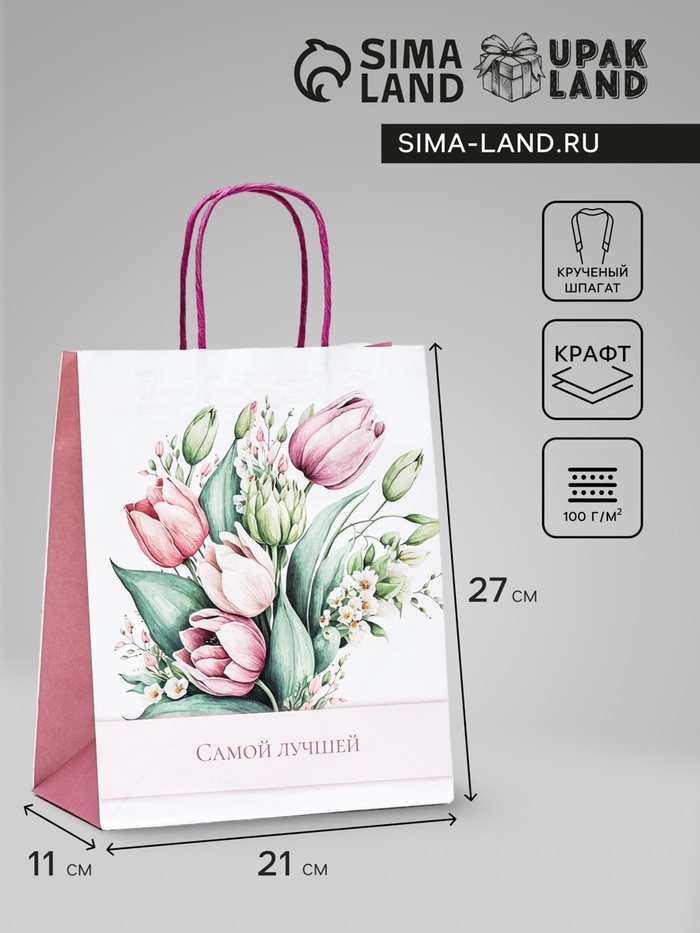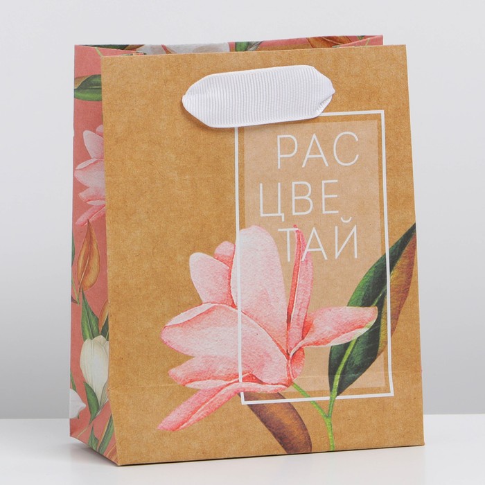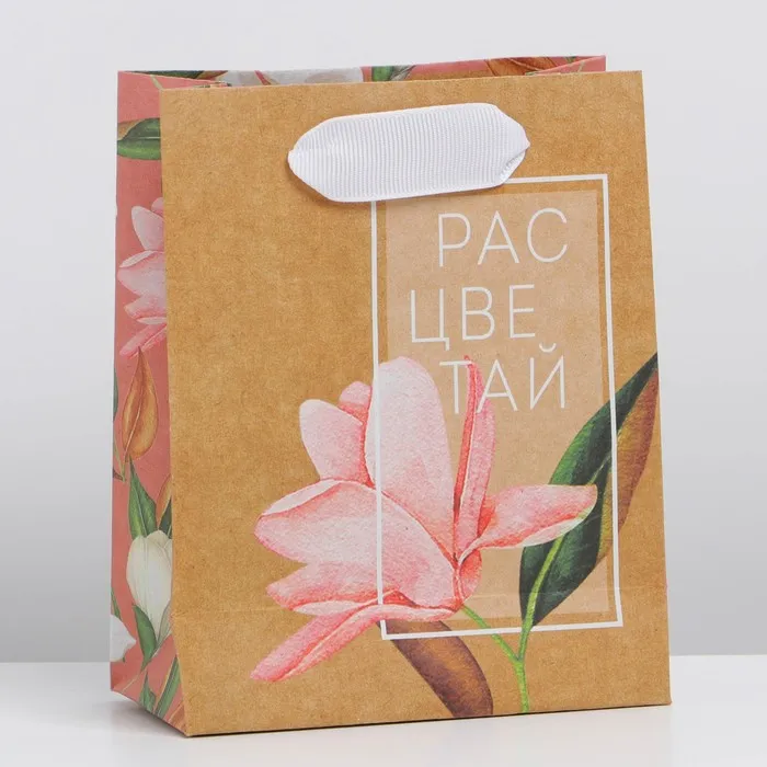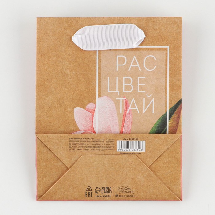 Пакет подарочный крафтовый, упаковка, «Расцветай», S 12 х 15 х 5.5 см — Характеристики