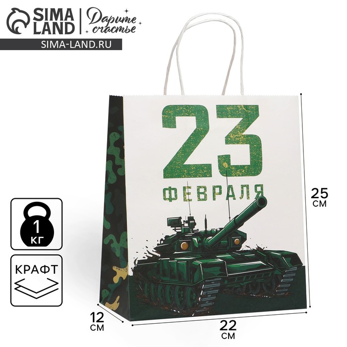 Пакет подарочный крафтовый, упаковка, «С 23 февраля», 22 х 25 х 12 см — Характеристики