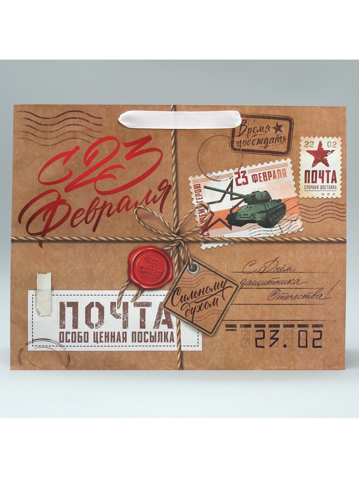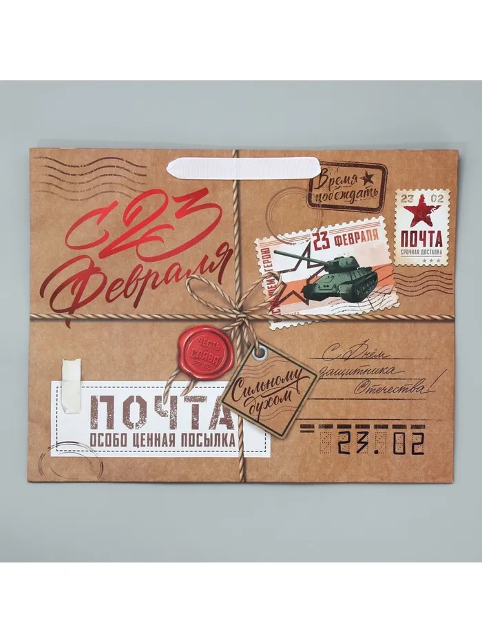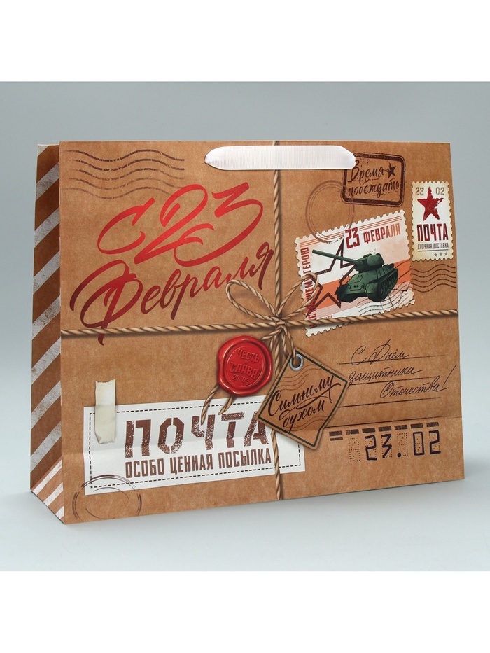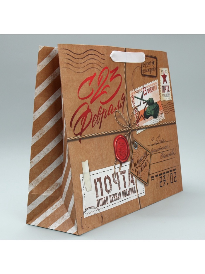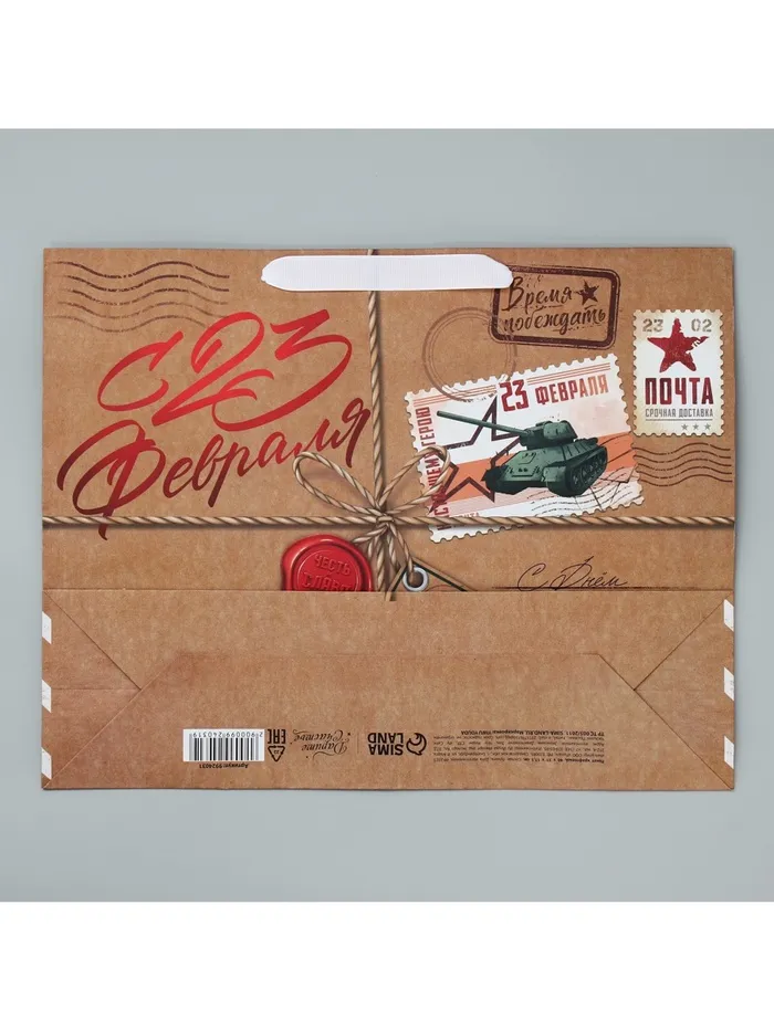 Пакет подарочный крафтовый, упаковка, «С 23 февраля», L 31 х 40 х 11.5 см — Характеристики