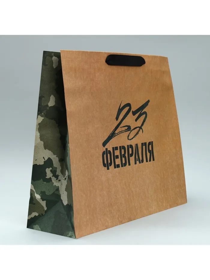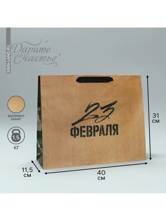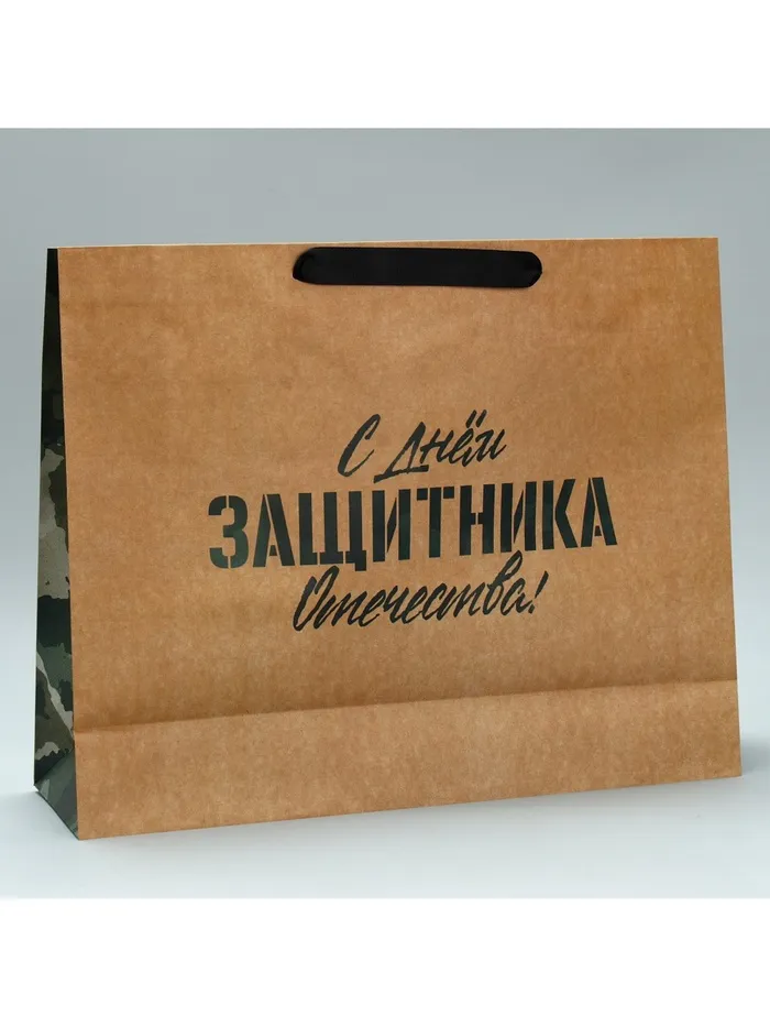 Пакет подарочный крафтовый, упаковка, «С 23 февраля», L 40×31×11.5 см — Характеристики