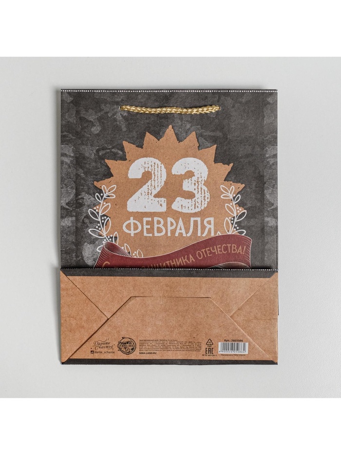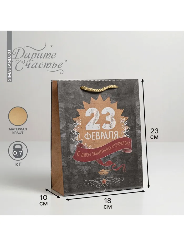 Пакет подарочный крафтовый, упаковка, «С 23 февраля», MS 18 х 23 х 8 см — Характеристики