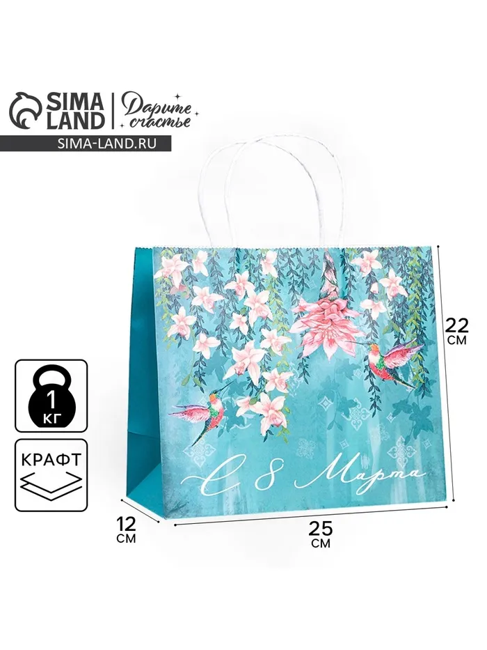 Пакет подарочный крафтовый, упаковка, «С 8 марта», 22 х 25 х 12 см — Характеристики