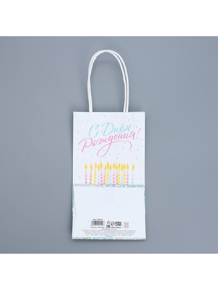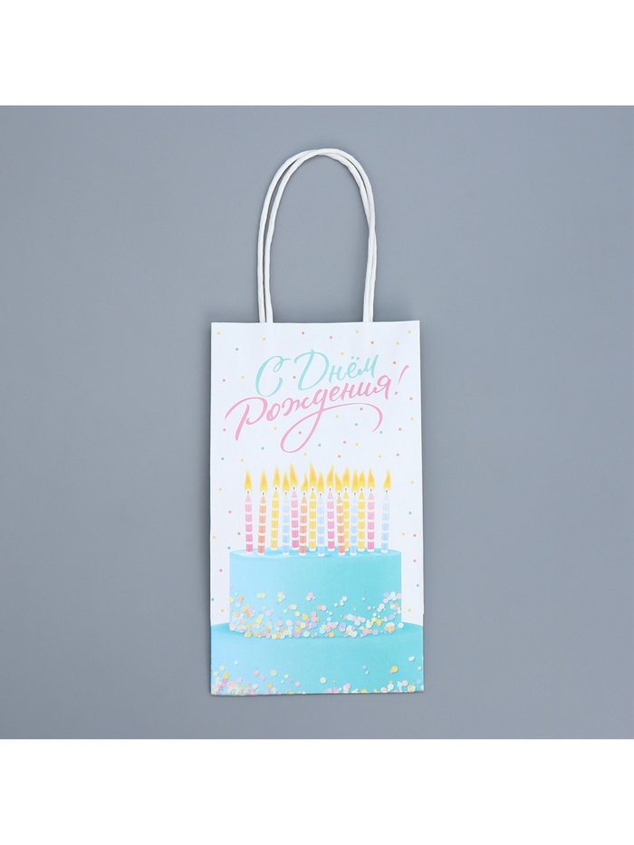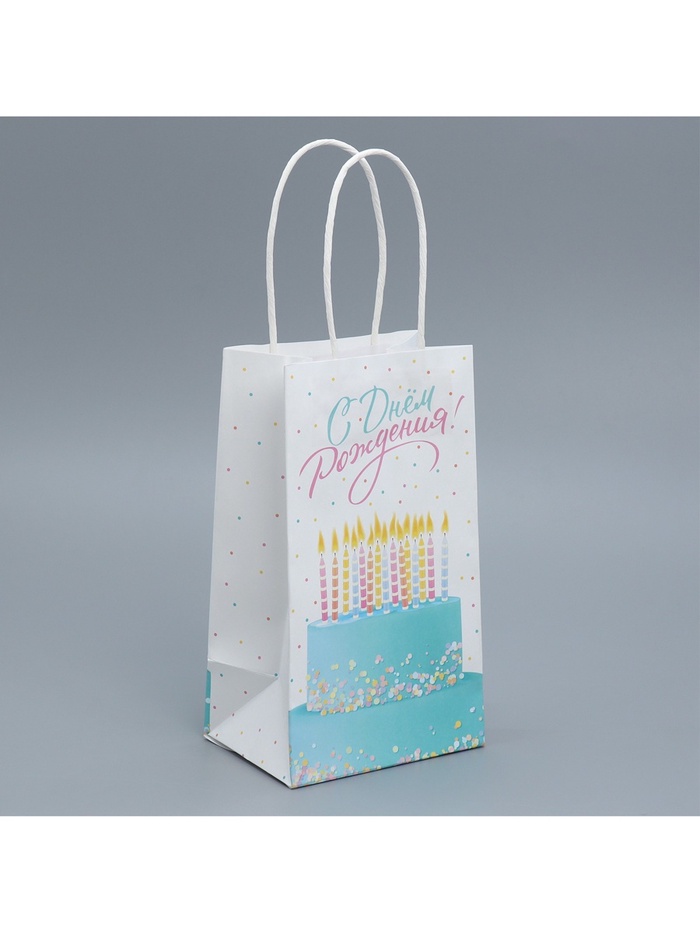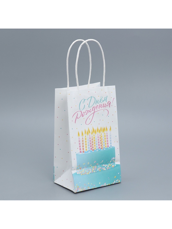 Пакет подарочный крафтовый, упаковка, «С Днем рождения!», 12 х 21 х 9 см — Характеристики