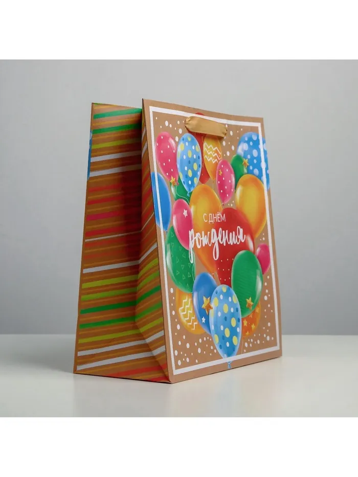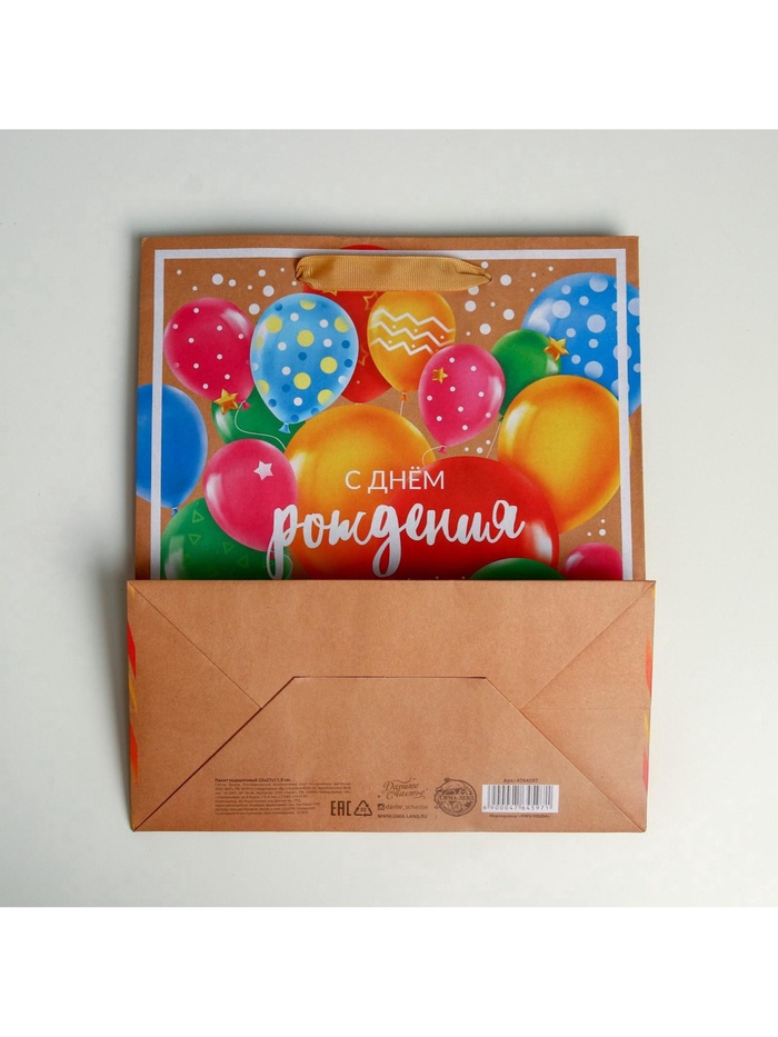 Пакет подарочный крафтовый, упаковка, «С Днем Рождения», ML 23 х 27 х 11.5 см — Характеристики