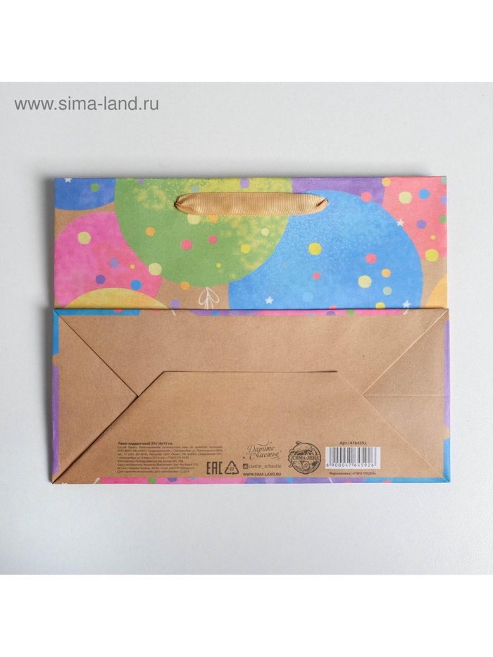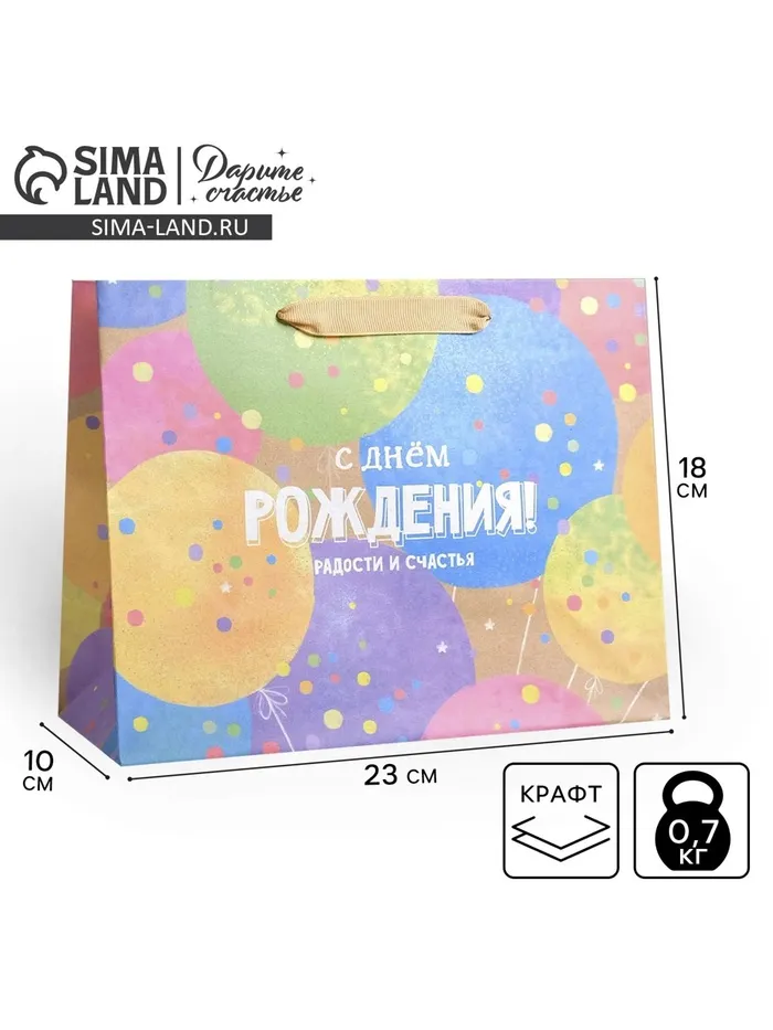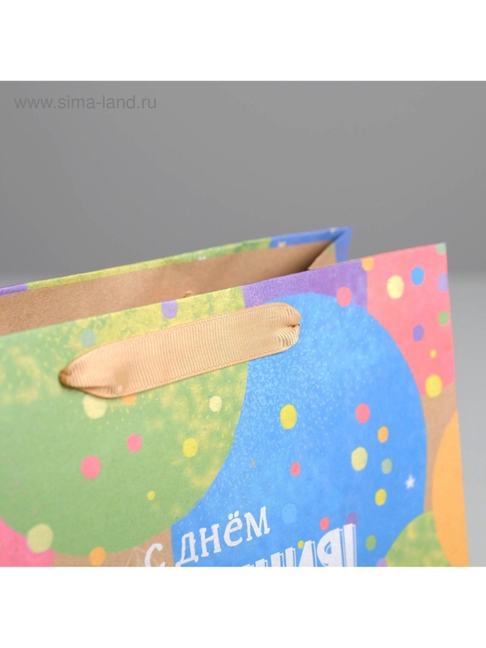 Пакет подарочный крафтовый, упаковка, С Днем Рождения!, MS 23 х 18 х 10 см — Характеристики