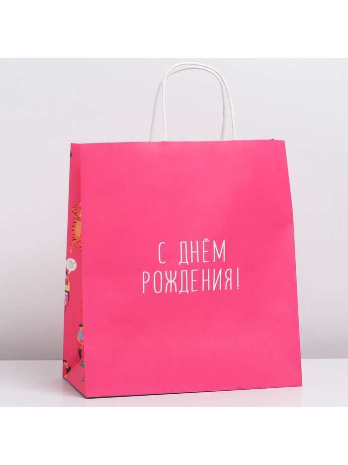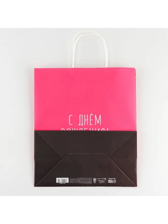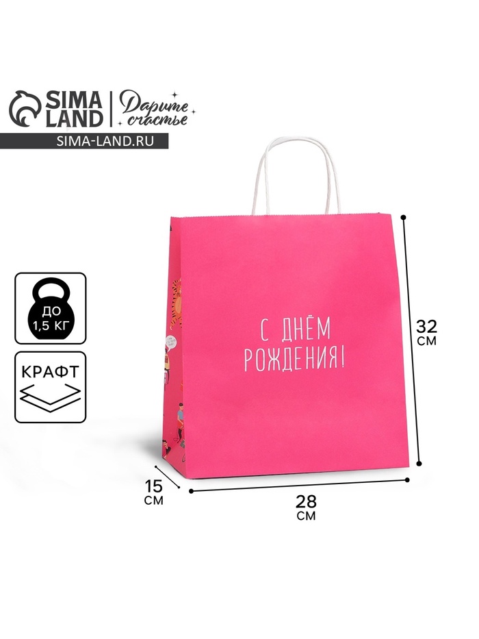 Пакет подарочный крафтовый, упаковка, «С днём рождения», 28 х 32 х 15 см — Характеристики