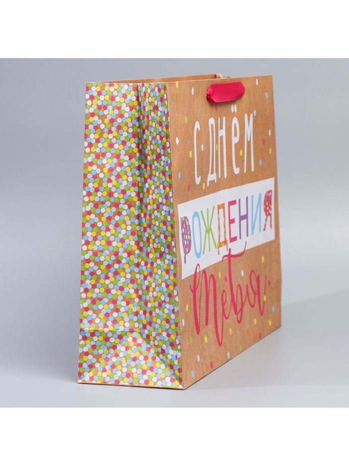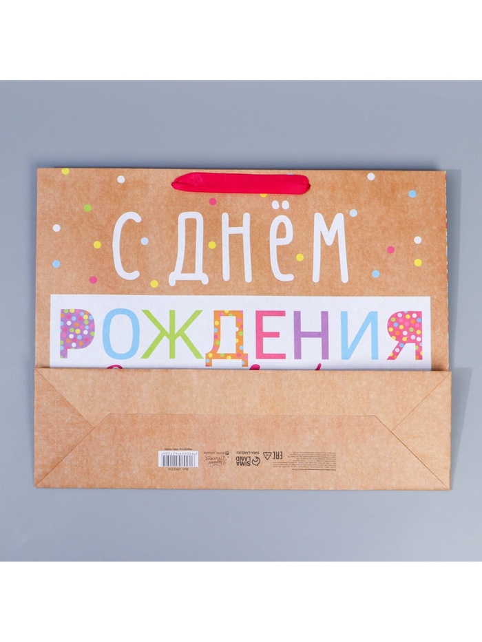 Пакет подарочный крафтовый, упаковка, «С Днём Рождения!», L 31 х 40 х 9 см — Характеристики