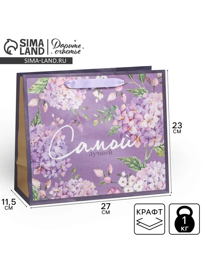 Пакет подарочный крафтовый, упаковка, «Самой лучшей», ML 27 х 23 х 11.5 см — Характеристики